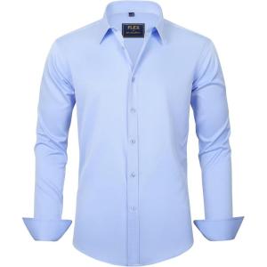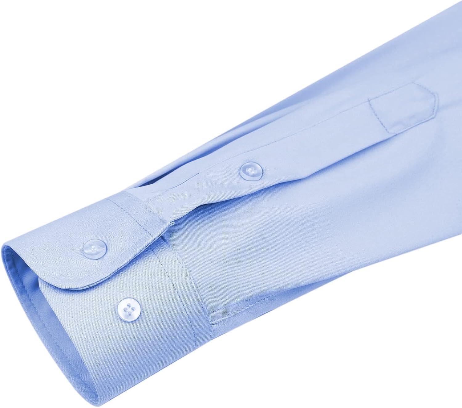 J.VER Boy’s Long Sleeve Dress Shirts Solid Stretch Wrinkle-Free Shirt Kids Casual Button Down Shirts School Uniform(Blue)