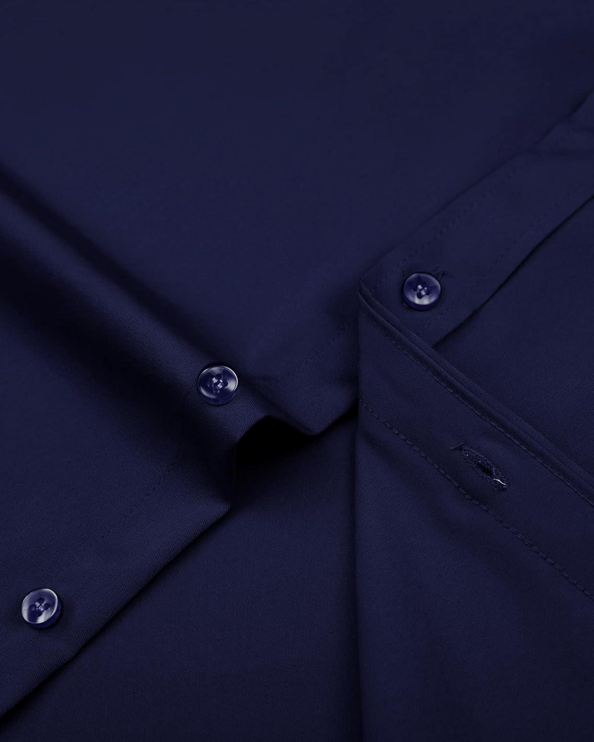 J.VER Boy’s Long Sleeve Dress Shirts Solid Stretch Wrinkle-Free Shirt Kids Casual Button Down Shirts School Uniform(Navy Blue)