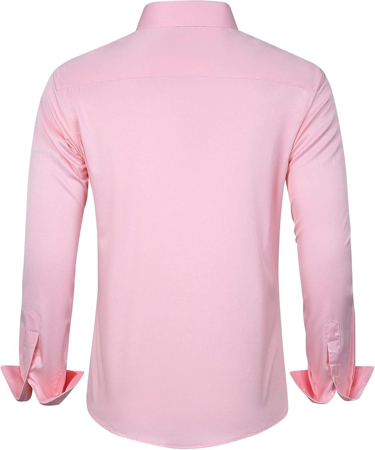 J.VER Boy’s Long Sleeve Dress Shirts Solid Stretch Wrinkle-Free Shirt Kids Casual Button Down Shirts School Uniform(Pink)