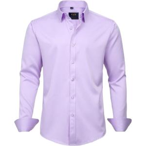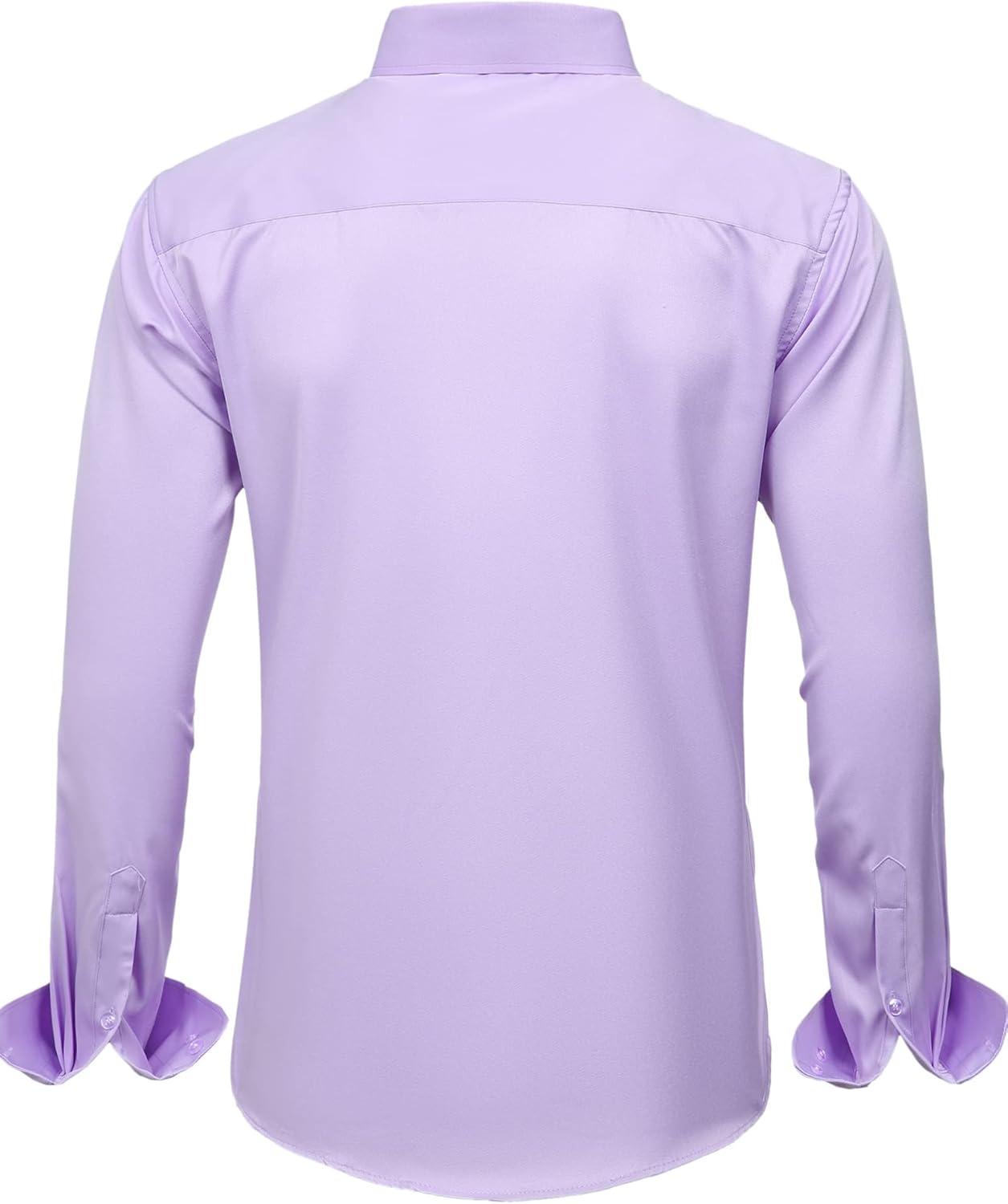 J.VER Boy’s Long Sleeve Dress Shirts Solid Stretch Wrinkle-Free Shirt Kids Casual Button Down Shirts School Uniform(Purple)