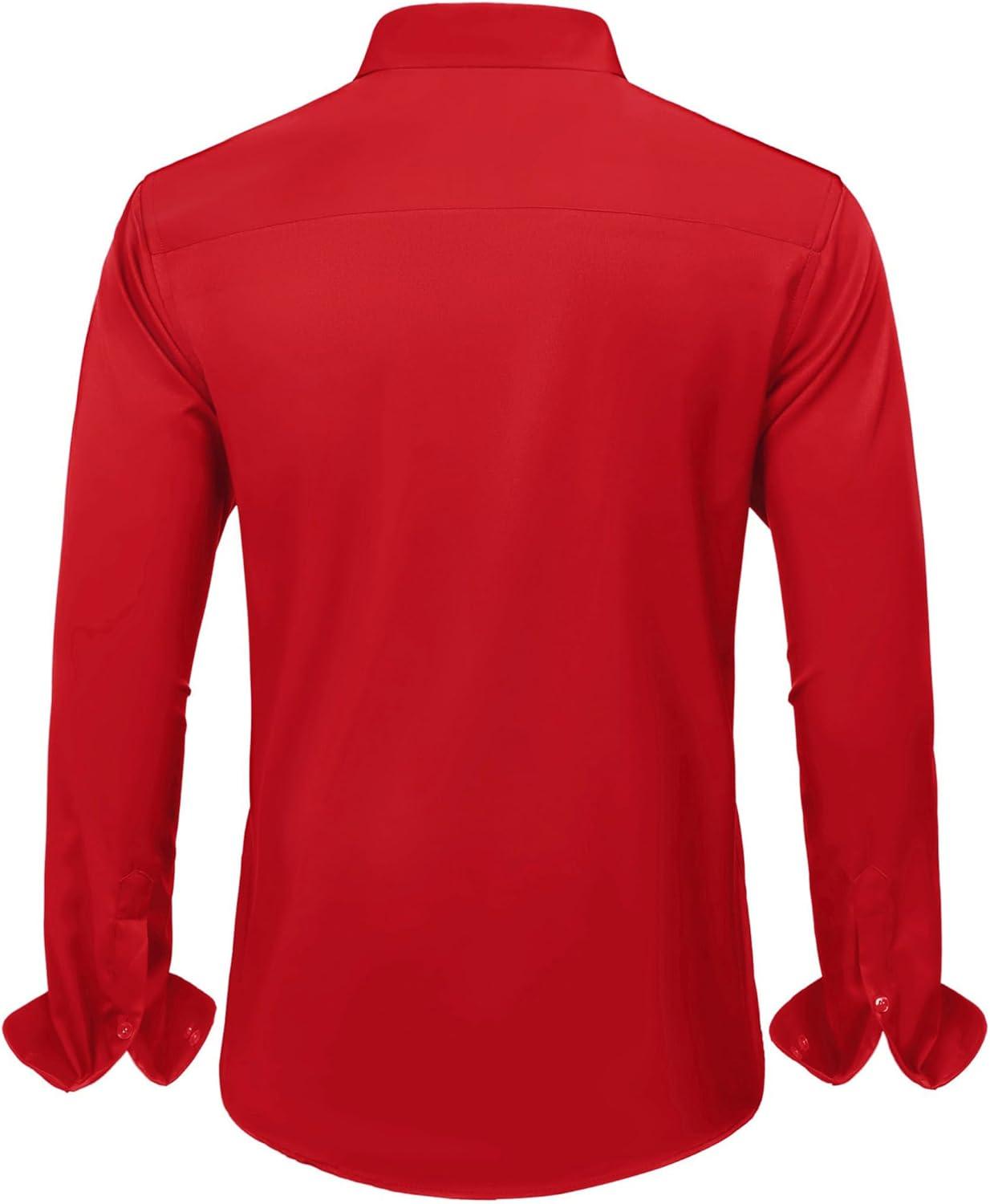 J.VER Boy’s Long Sleeve Dress Shirts Solid Stretch Wrinkle-Free Shirt Kids Casual Button Down Shirts School Uniform(Red)