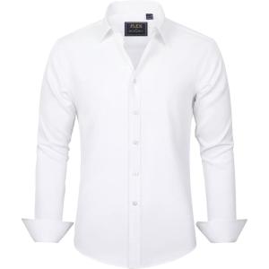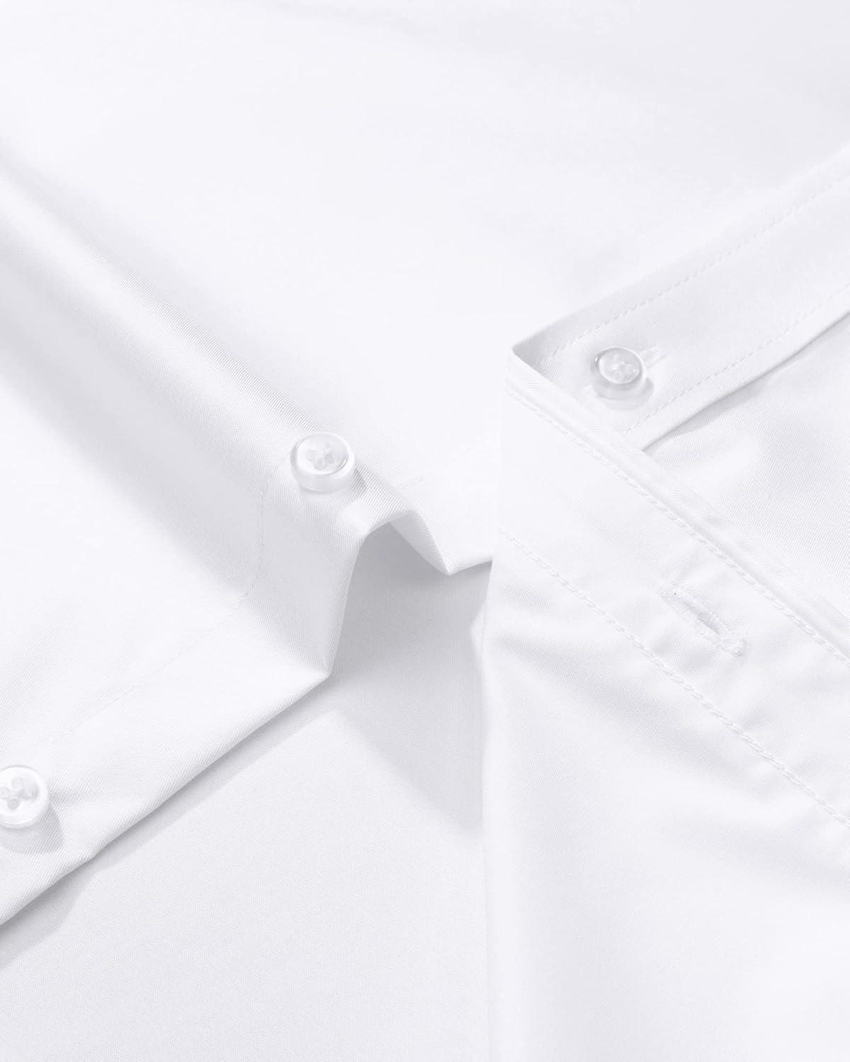 J.VER Boy’s Long Sleeve Dress Shirts Solid Stretch Wrinkle-Free Shirt Kids Casual Button Down Shirts School Uniform(White)