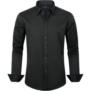 J.VER Boy’s Long Sleeve Dress Shirts Solid Stretch Wrinkle-Free Shirt Kids Casual Button Down Shirts School Uniform(Black)