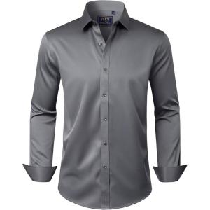 J.VER Boy’s Long Sleeve Dress Shirts Solid Stretch Wrinkle-Free Shirt Kids Casual Button Down Shirts School Uniform(Grey)