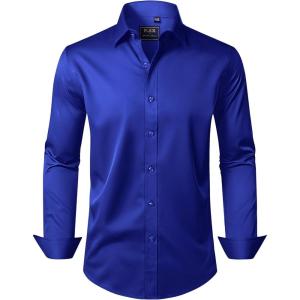 J.VER Boy’s Long Sleeve Dress Shirts Solid Stretch Wrinkle-Free Shirt Kids Casual Button Down Shirts School Uniform(Royal Blue)