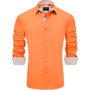 J.VER Men’s Casual Long Sleeve Stretch Dress Shirt Wrinkle-Free Regular Fit Button Down Shirts(Orange)