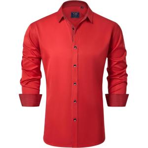J.VER Men’s Casual Long Sleeve Stretch Dress Shirt Wrinkle-Free Regular Fit Button Down Shirts(Bright Red)