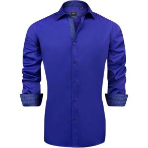 J.VER Men’s Casual Long Sleeve Stretch Dress Shirt Wrinkle-Free Regular Fit Button Down Shirts(Royalblue)