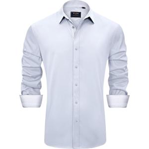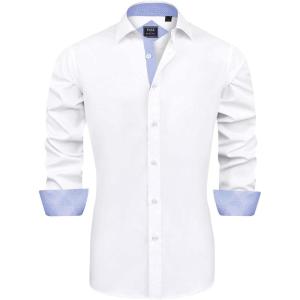 J.VER Men’s Casual Long Sleeve Stretch Dress Shirt Wrinkle-Free Regular Fit Button Down Shirts(White Blue)