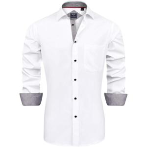 J.VER Men’s Casual Long Sleeve Stretch Dress Shirt Wrinkle-Free Regular Fit Button Down Shirts(White Black)