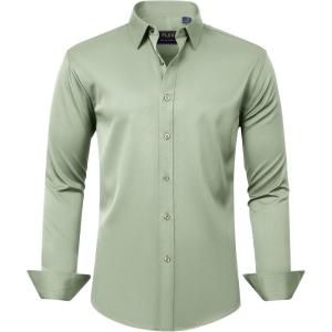 J.VER Men’s Dress Shirts Solid Long Sleeve Stretch Wrinkle-Free Formal Shirt Business Casual Button Down Shirts(Sage Green)