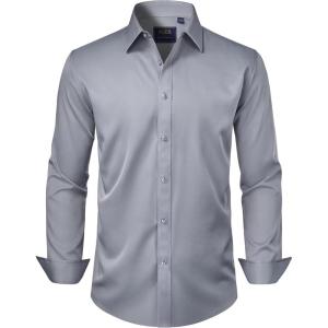 J.VER Men’s Dress Shirts Solid Long Sleeve Stretch Wrinkle-Free Formal Shirt Business Casual Button Down Shirts(Silver Grey)