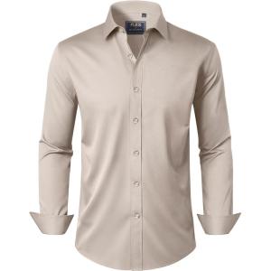 J.VER Men’s Dress Shirts Solid Long Sleeve Stretch Wrinkle-Free Formal Shirt Business Casual Button Down Shirts(Tan)