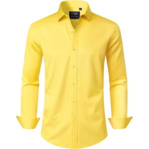 J.VER Men’s Dress Shirts Solid Long Sleeve Stretch Wrinkle-Free Formal Shirt Business Casual Button Down Shirts(Yellow)