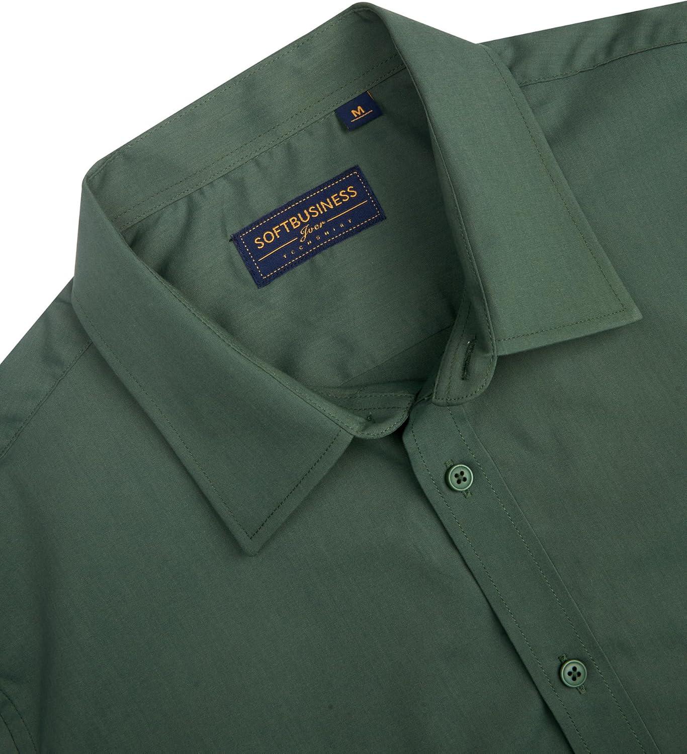 J.VER Men’s Short Sleeve Dress Shirts Stretch Stain Shield Casual Button Down Shirts Solid Formal Shirt(Army Green)