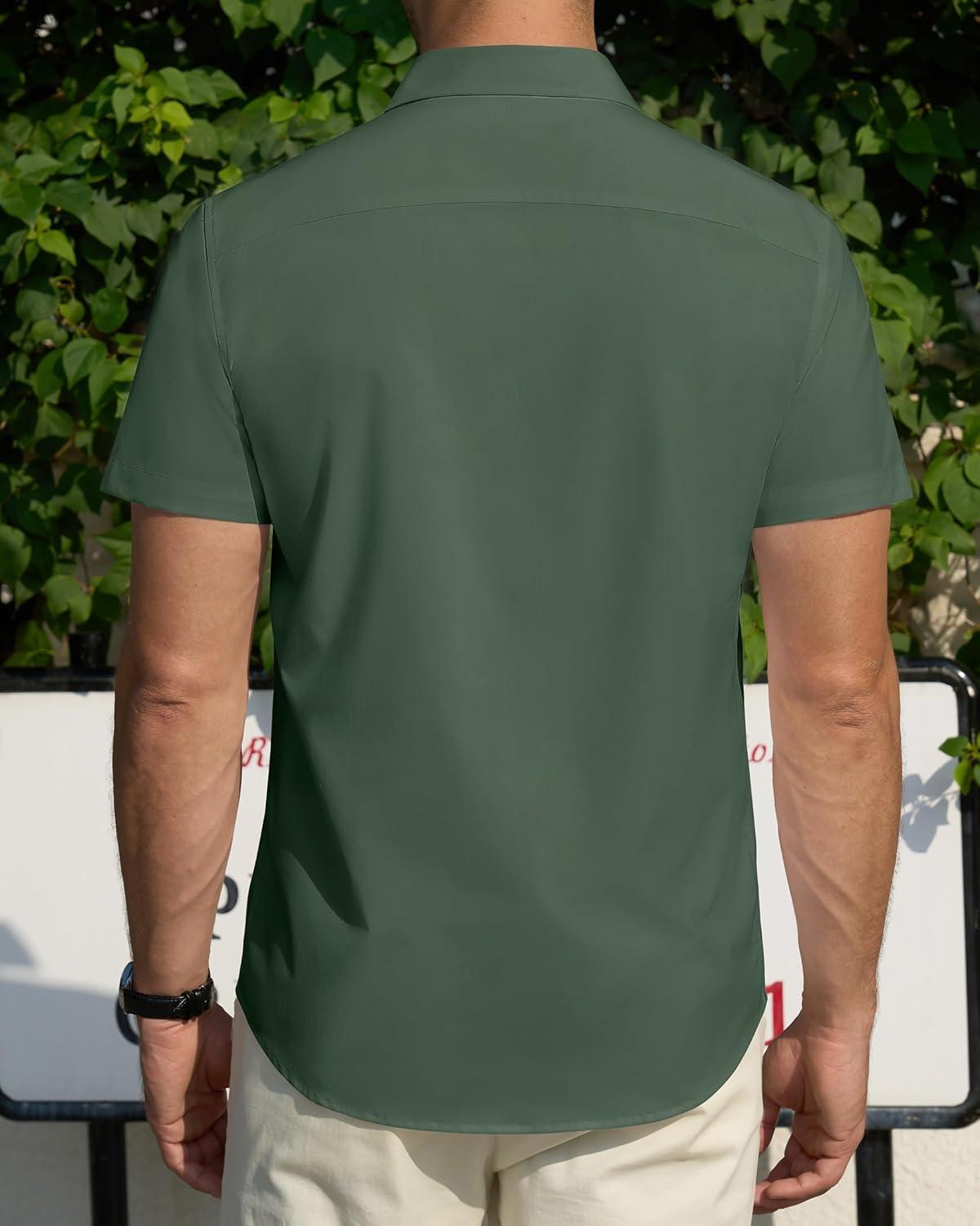 • J.VER Men’s Short Sleeve Dress Shirts Stretch Stain Shield Casual Button Down Shirts Solid Formal Shirt(Army Green)