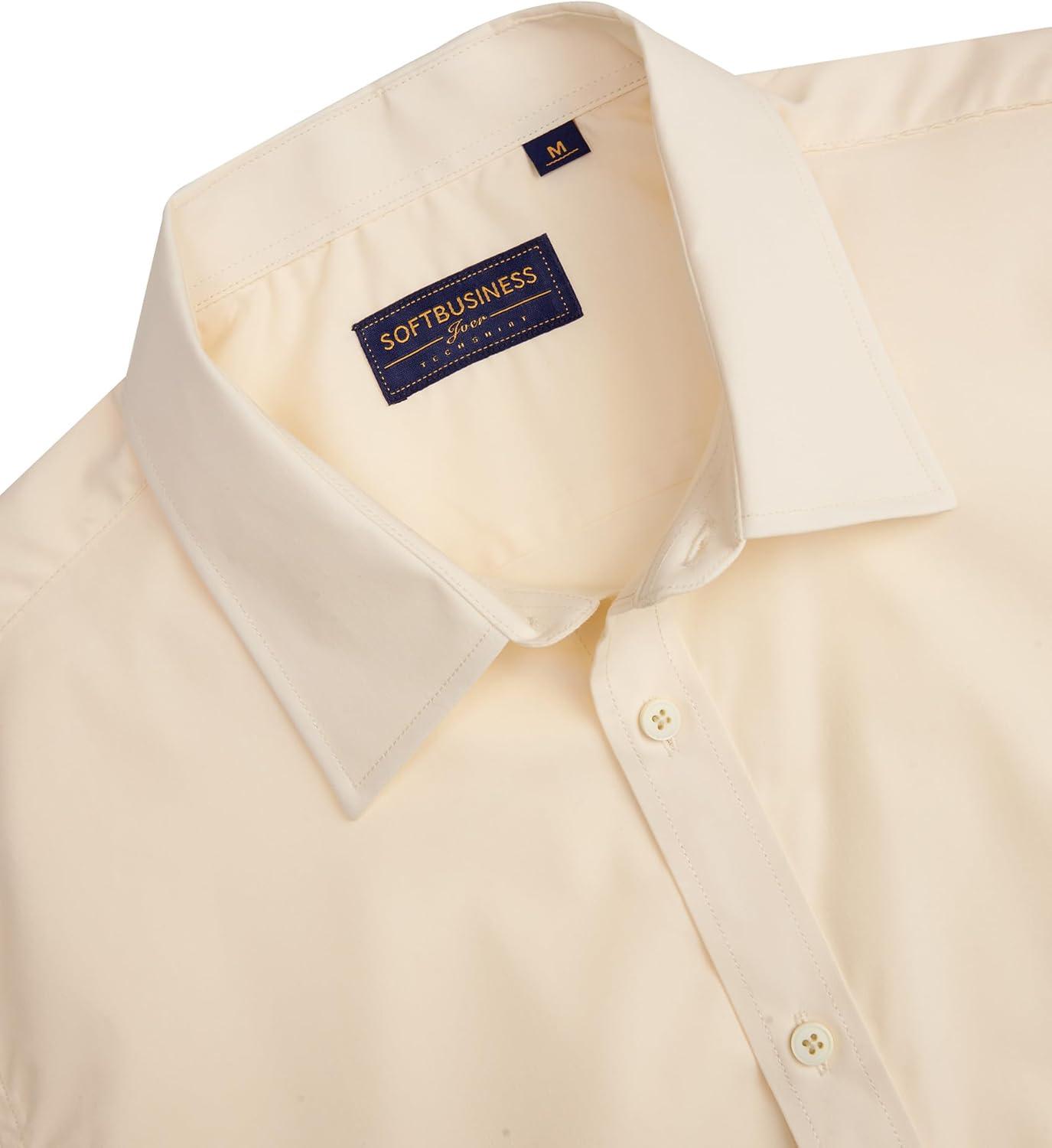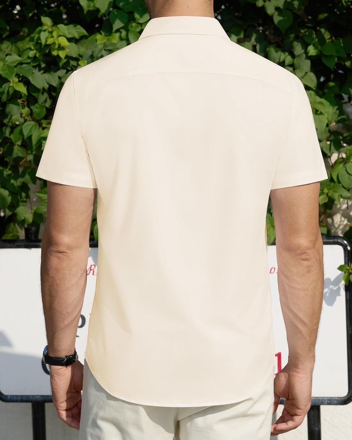 • J.VER Men’s Short Sleeve Dress Shirts Stretch Stain Shield Casual Button Down Shirts Solid Formal Shirt(Beige)