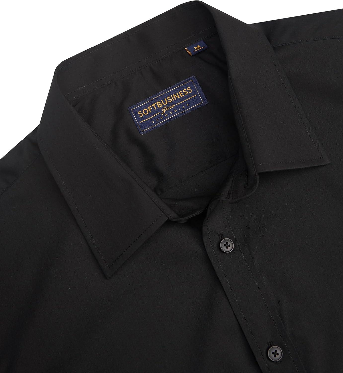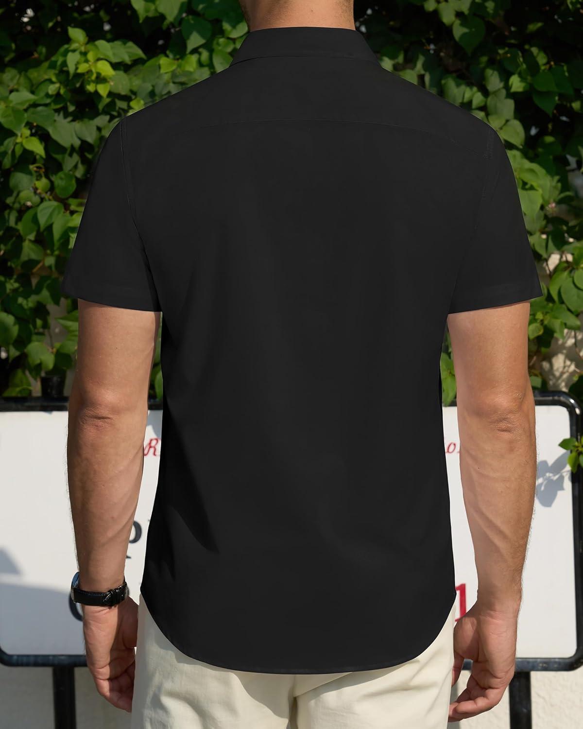• J.VER Men’s Short Sleeve Dress Shirts Stretch Stain Shield Casual Button Down Shirts Solid Formal Shirt(Black)