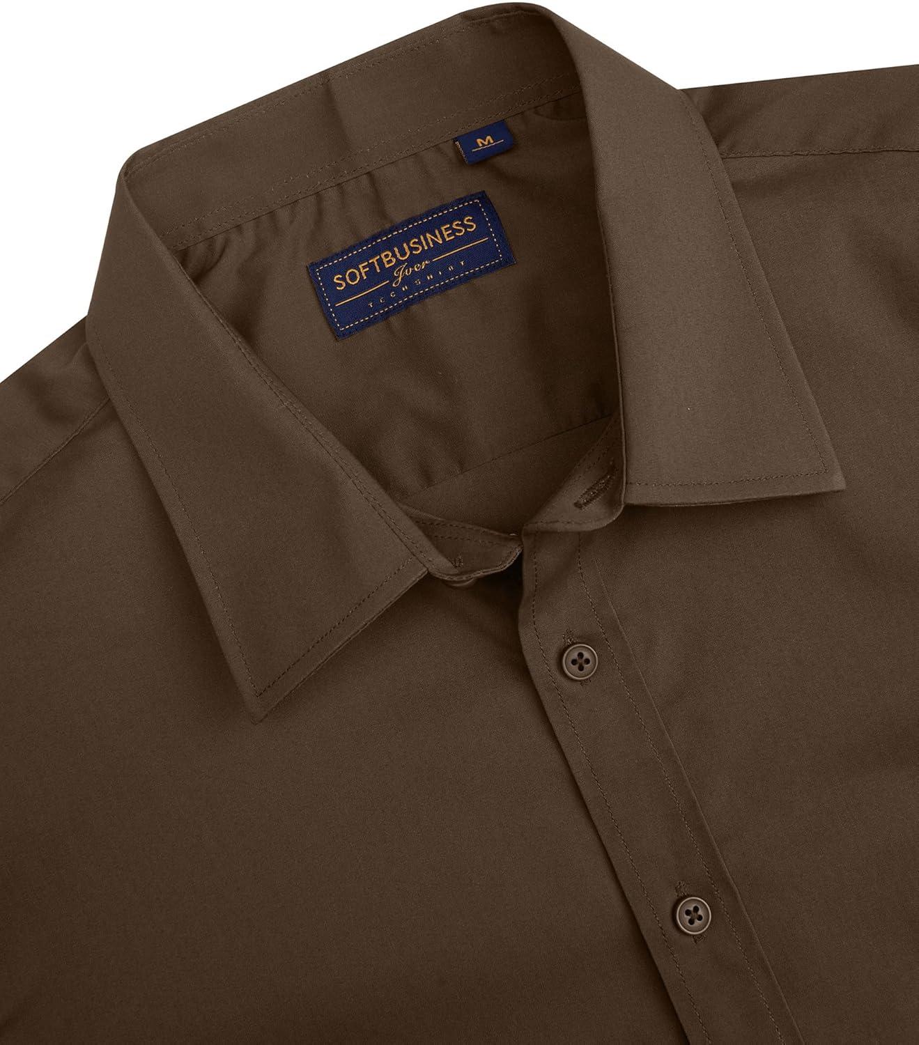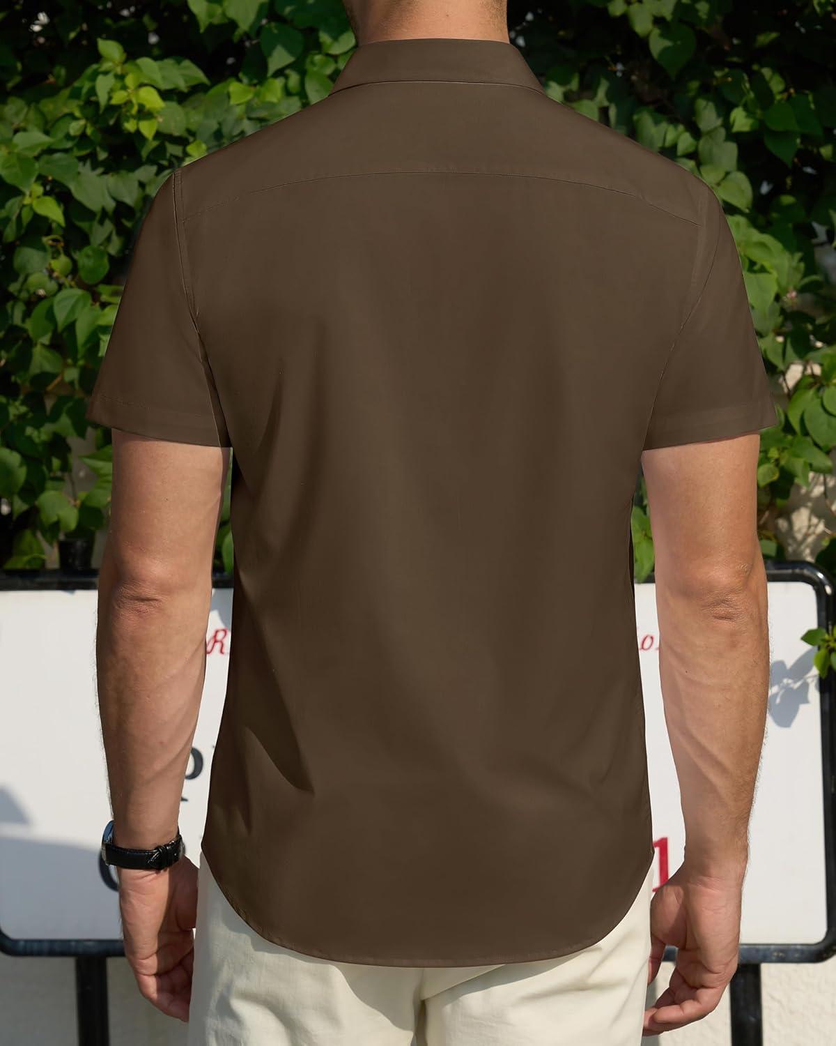 • J.VER Men’s Short Sleeve Dress Shirts Stretch Stain Shield Casual Button Down Shirts Solid Formal Shirt(Brown)