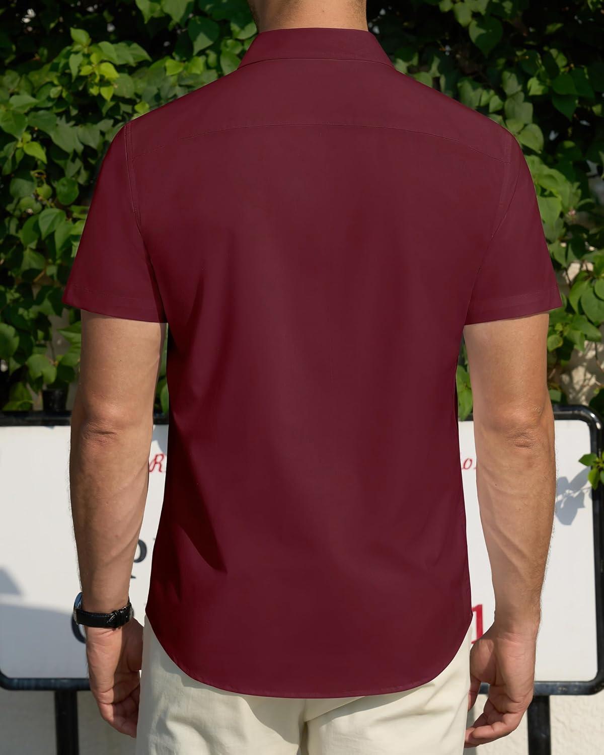 • J.VER Men’s Short Sleeve Dress Shirts Stretch Stain Shield Casual Button Down Shirts Solid Formal Shirt(Burgundy)