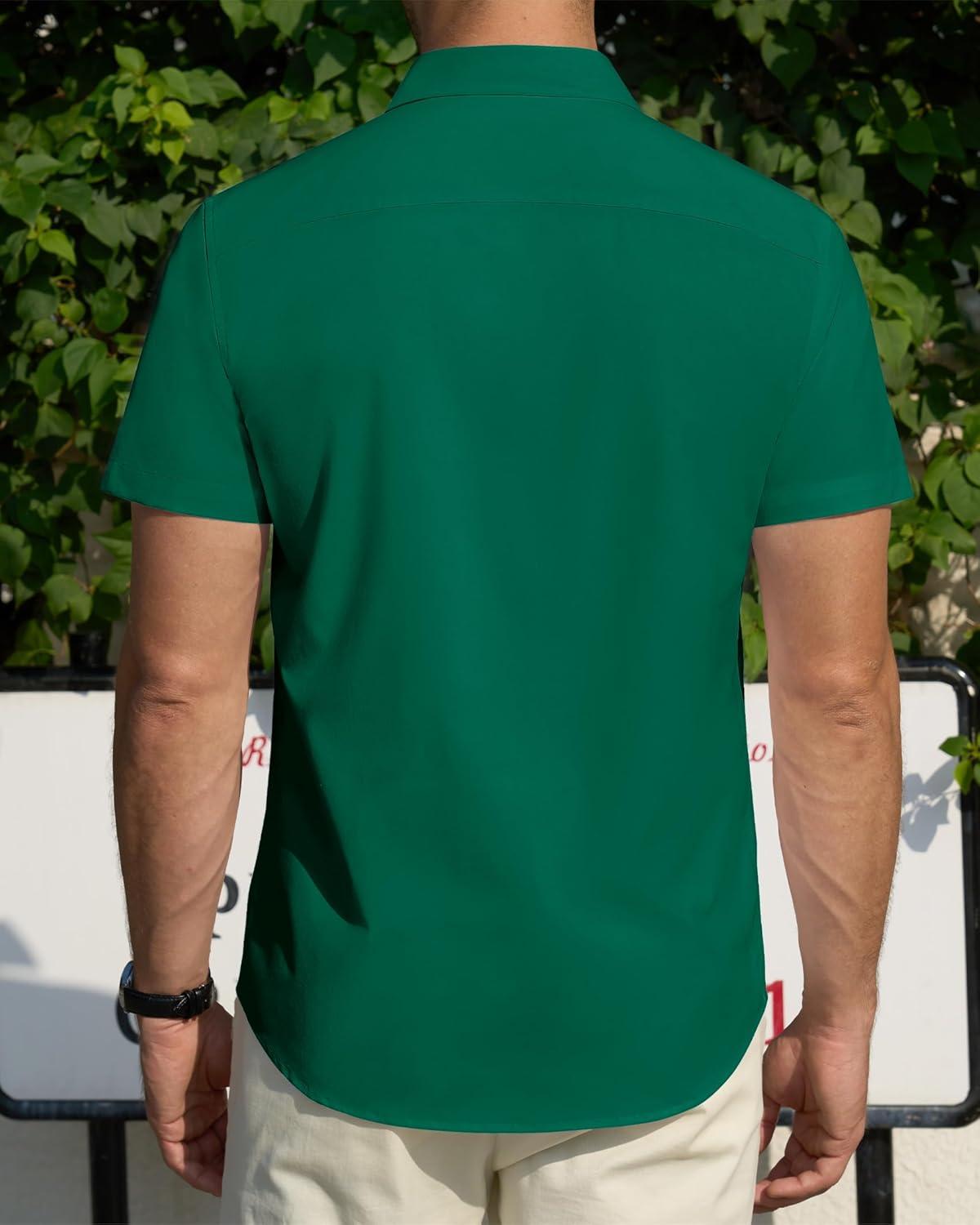 • J.VER Men’s Short Sleeve Dress Shirts Stretch Stain Shield Casual Button Down Shirts Solid Formal Shirt(Dark Green)