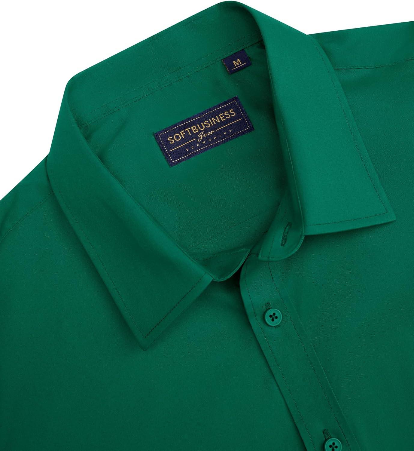 J.VER Men’s Short Sleeve Dress Shirts Stretch Stain Shield Casual Button Down Shirts Solid Formal Shirt(Dark Green)