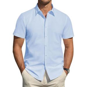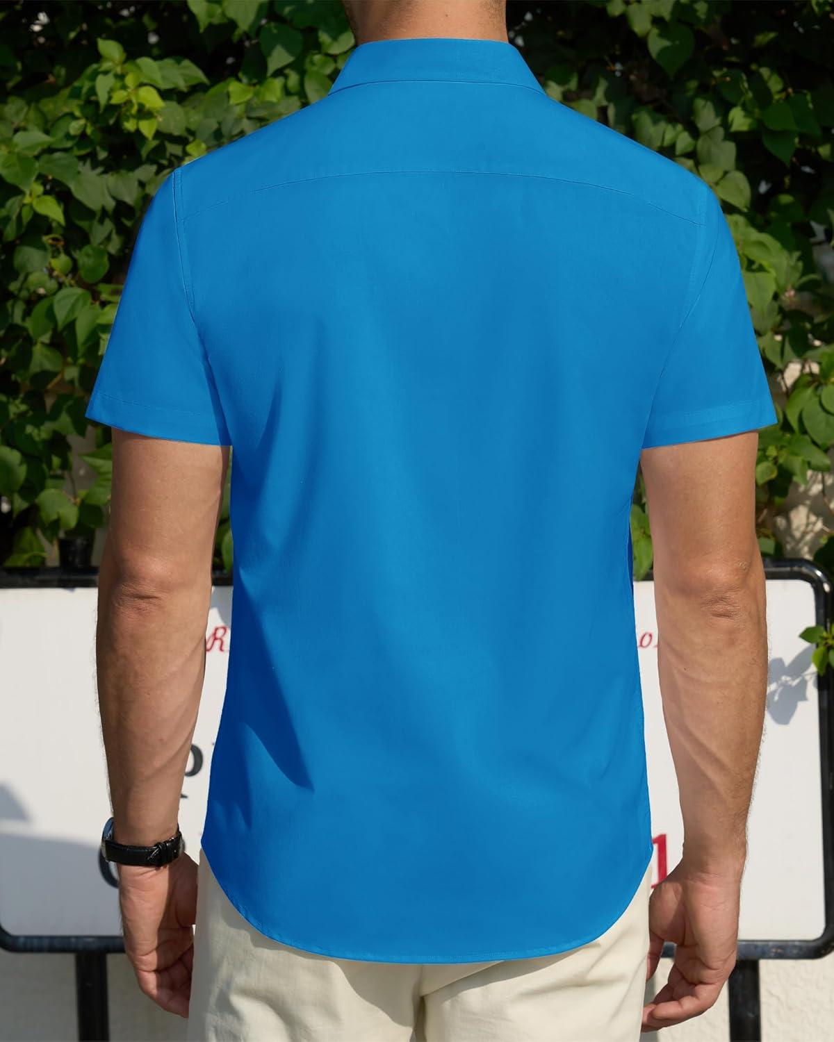 • J.VER Men’s Short Sleeve Dress Shirts Stretch Stain Shield Casual Button Down Shirts Solid Formal Shirt(Light Blue)