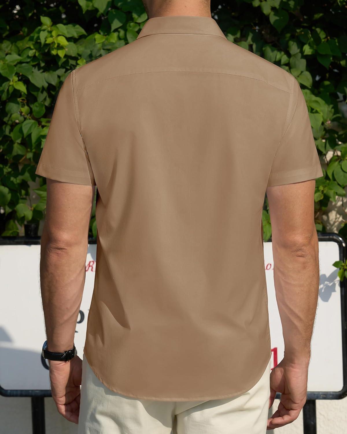 • J.VER Men’s Short Sleeve Dress Shirts Stretch Stain Shield Casual Button Down Shirts Solid Formal Shirt(Khaki)