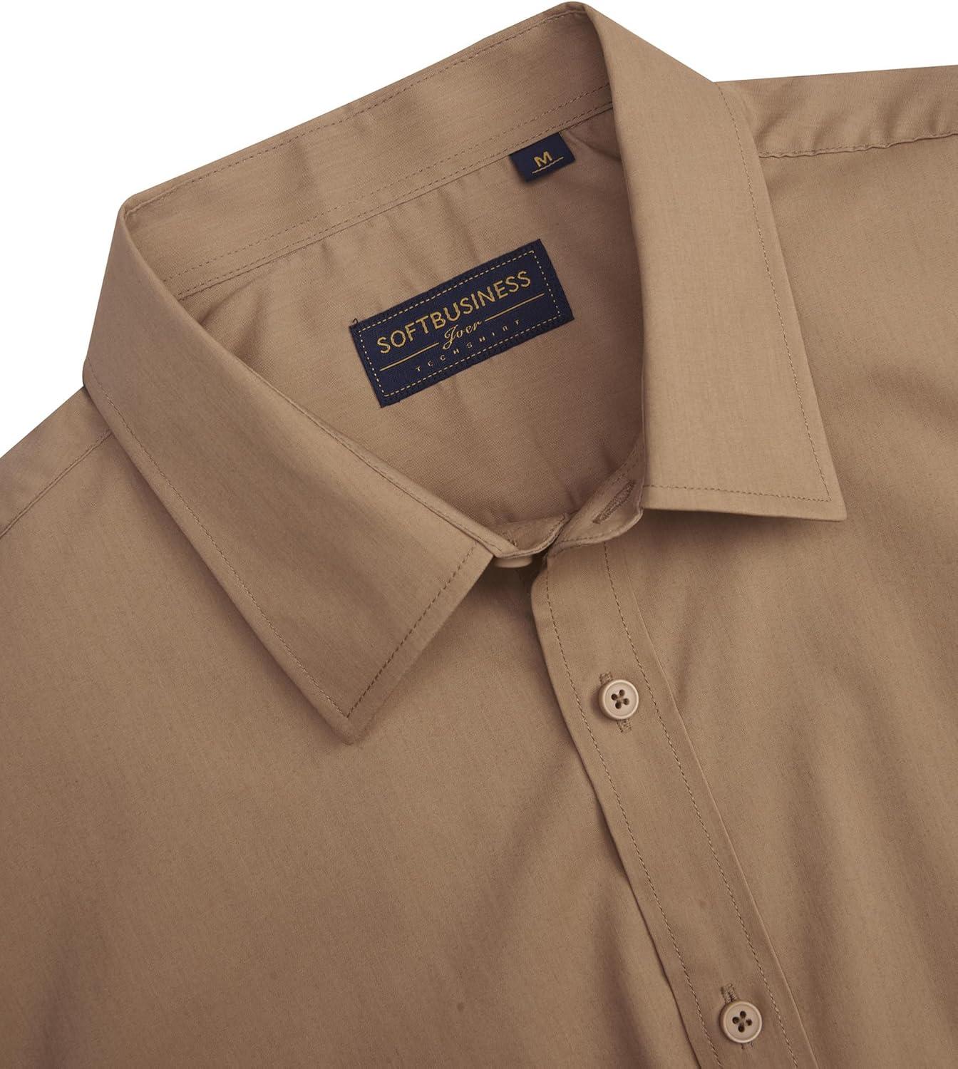 J.VER Men’s Short Sleeve Dress Shirts Stretch Stain Shield Casual Button Down Shirts Solid Formal Shirt(Khaki)