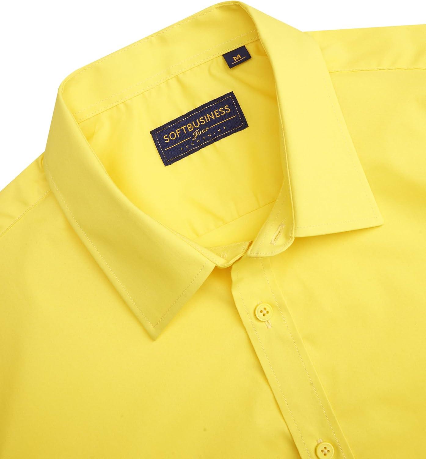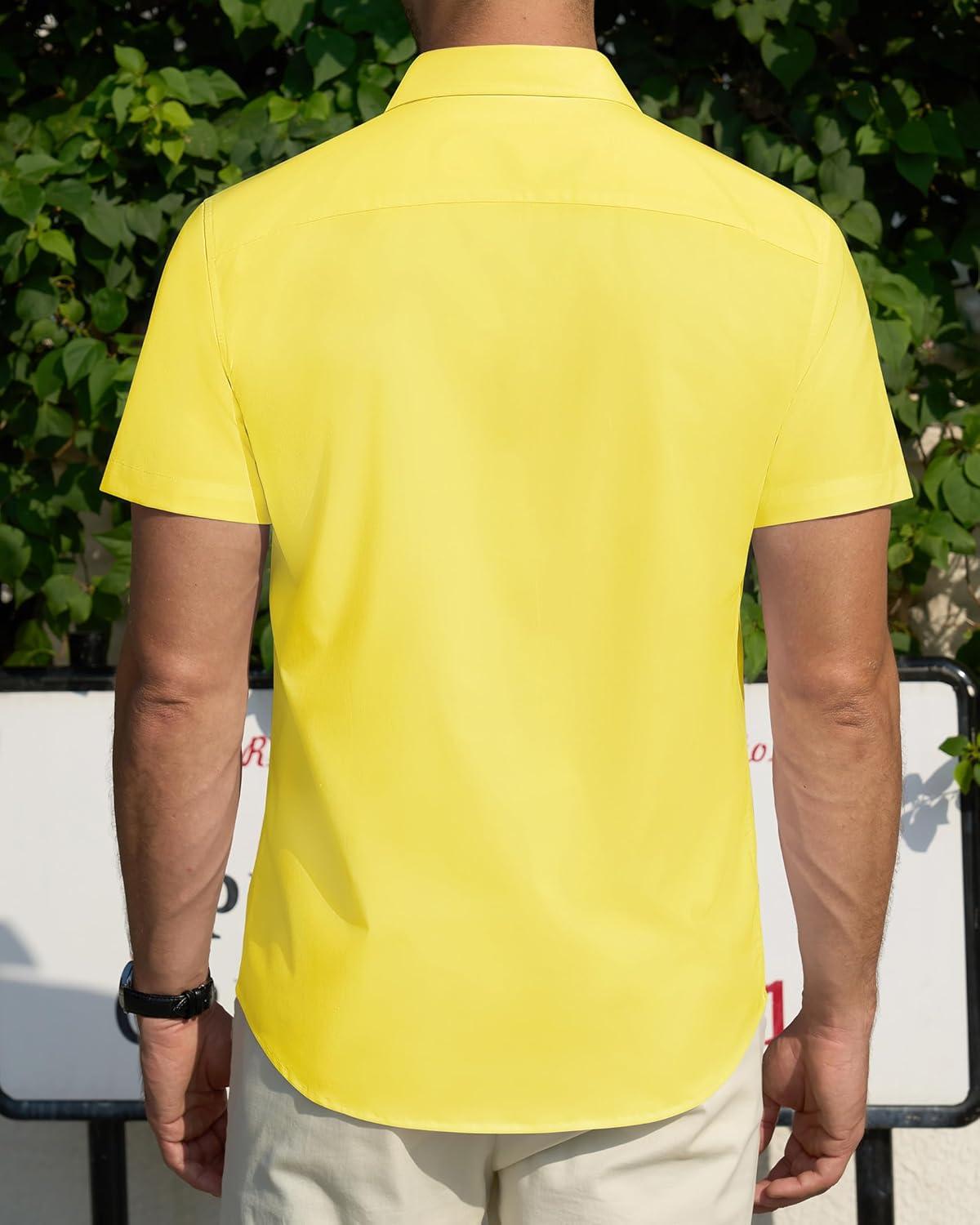 • J.VER Men’s Short Sleeve Dress Shirts Stretch Stain Shield Casual Button Down Shirts Solid Formal Shirt(Lemon Yellow)