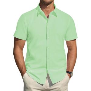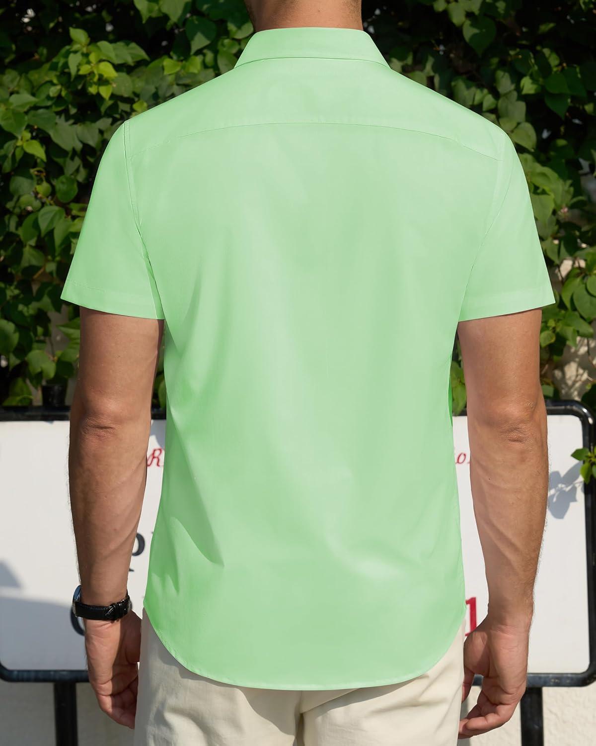 • J.VER Men’s Short Sleeve Dress Shirts Stretch Stain Shield Casual Button Down Shirts Solid Formal Shirt(Light Green)