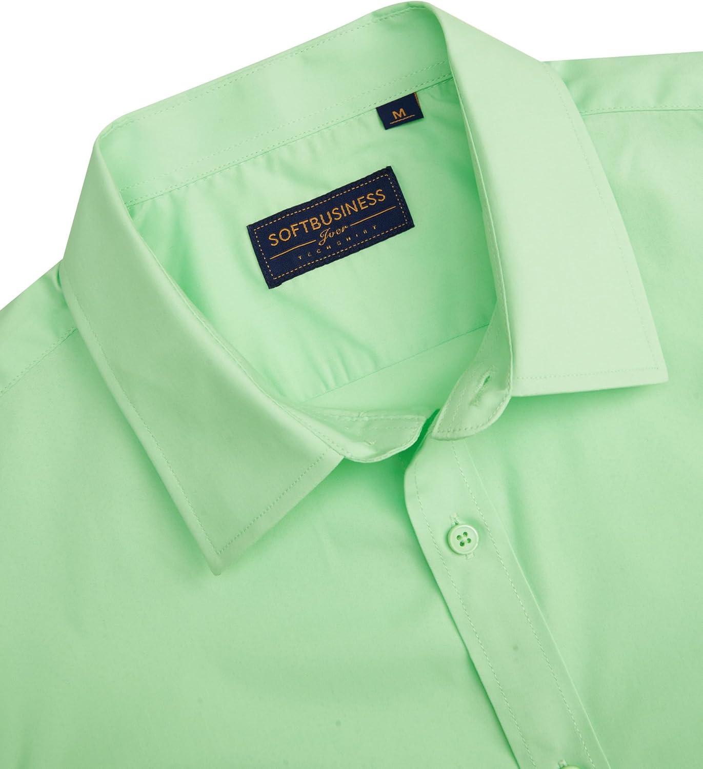 J.VER Men’s Short Sleeve Dress Shirts Stretch Stain Shield Casual Button Down Shirts Solid Formal Shirt(Light Green)