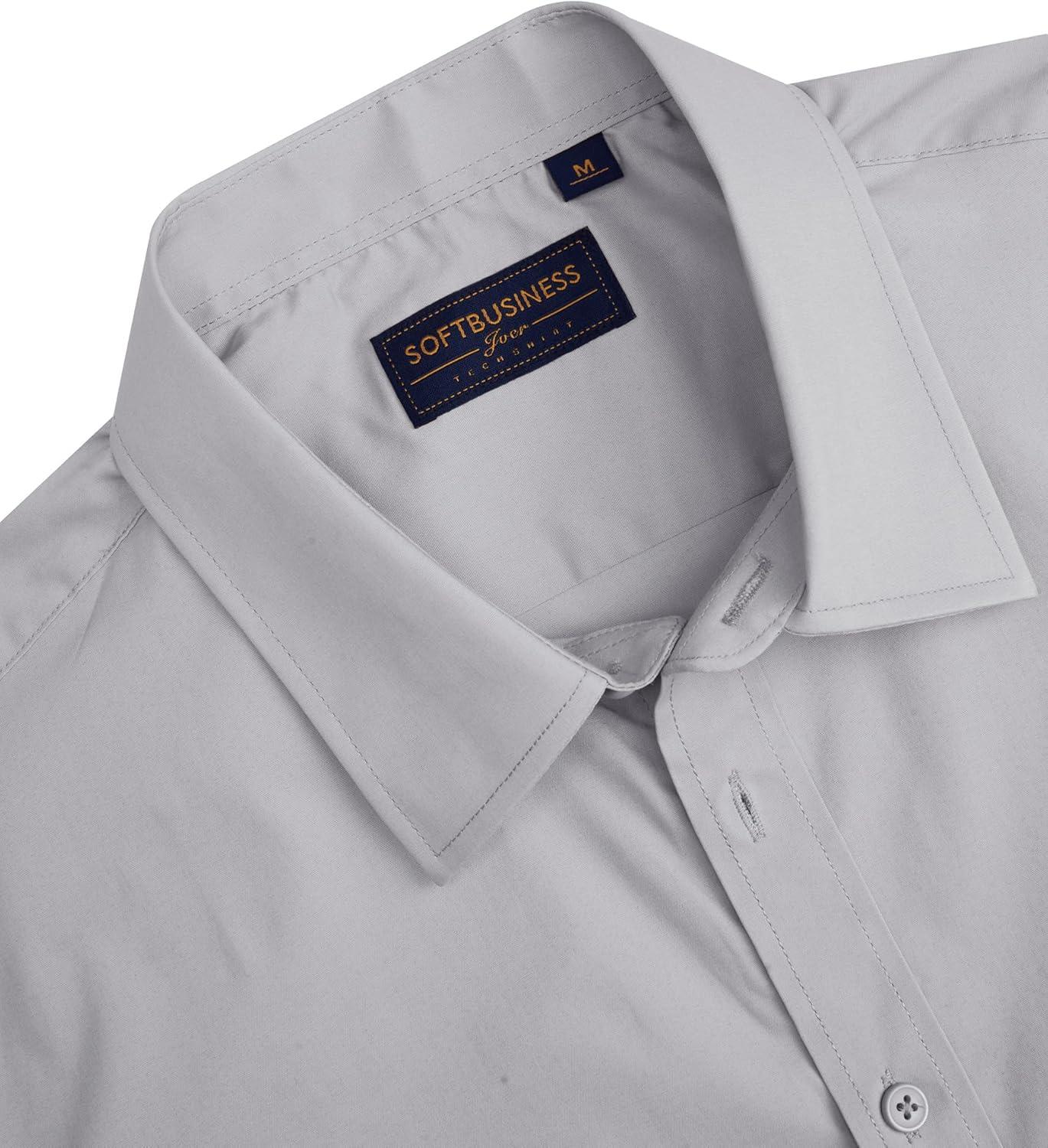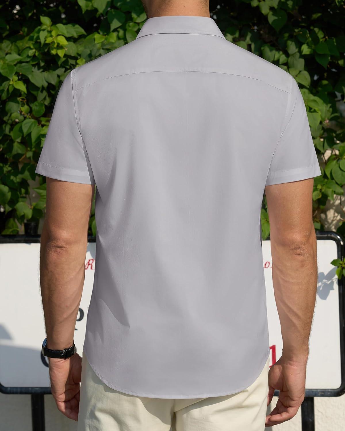 J.VER Men’s Short Sleeve Dress Shirts Stretch Stain Shield Casual Button Down Shirts Solid Formal Shirt(Light Grey)