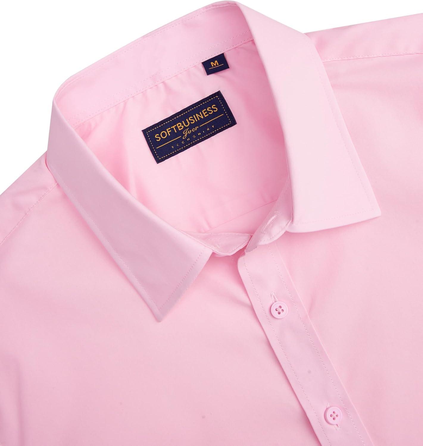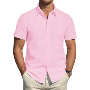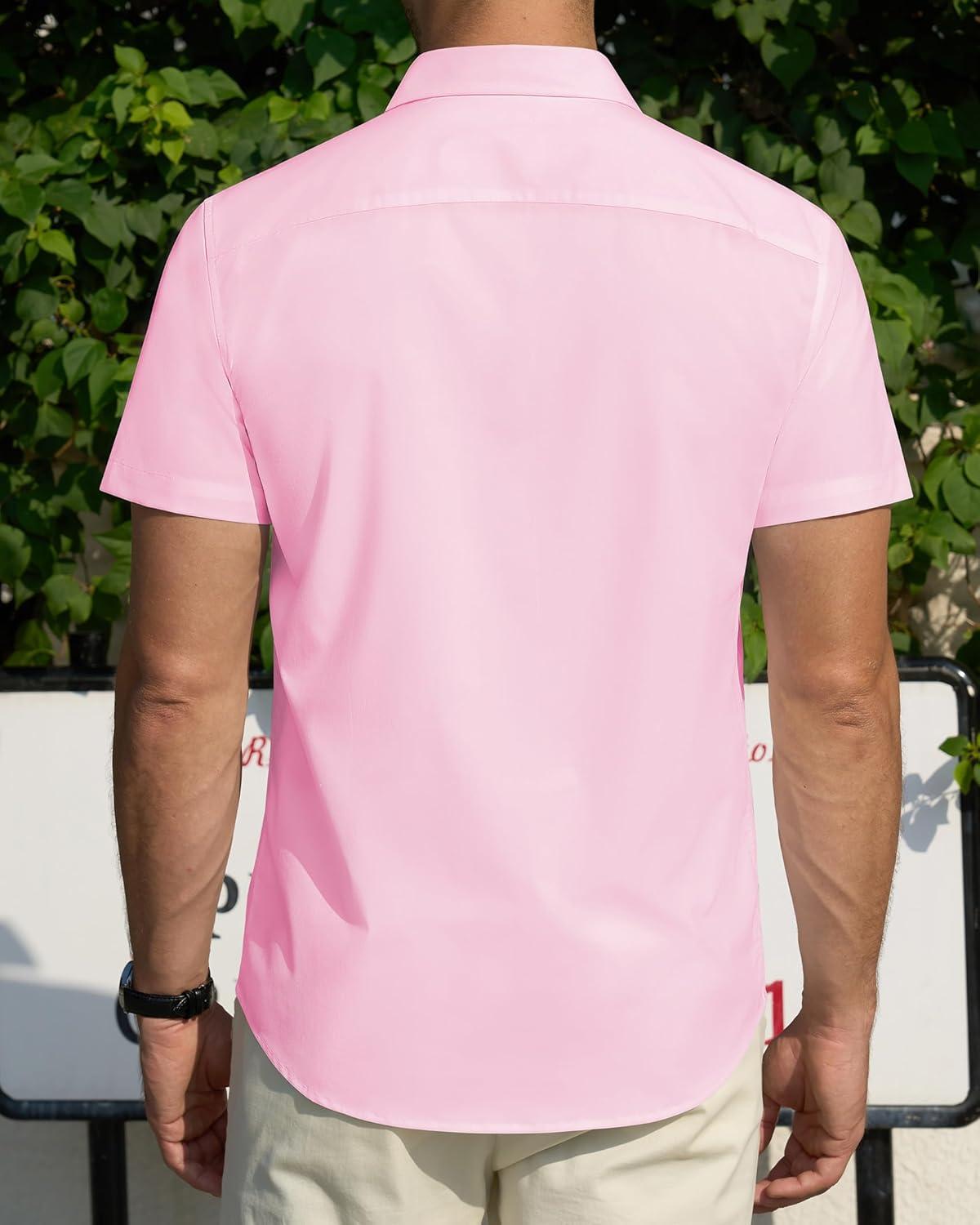 • J.VER Men’s Short Sleeve Dress Shirts Stretch Stain Shield Casual Button Down Shirts Solid Formal Shirt(Light Pink)
