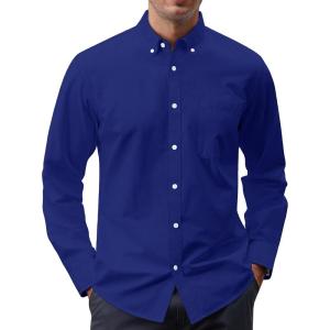 • J.VER Men’s Oxford Shirt Solid Casual Button Down Collar Shirts Long Sleeve Dress Shirts with Pocket(Royal Blue)