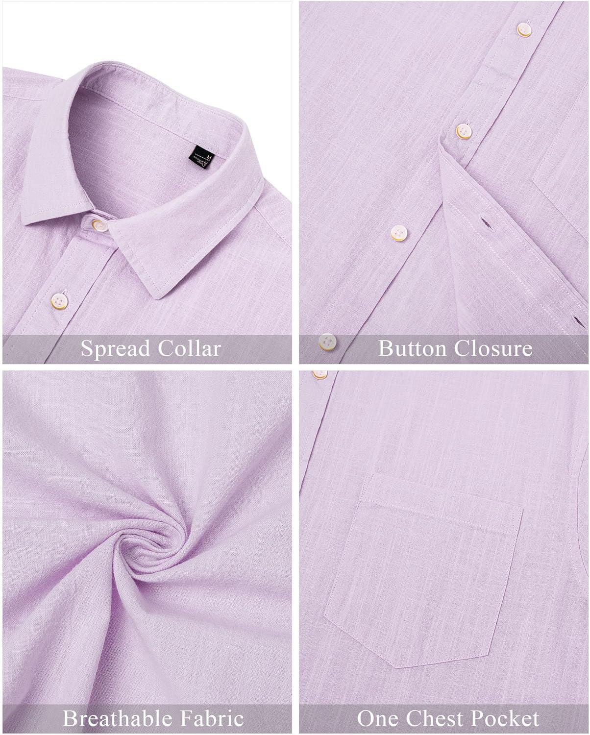 J.VER Men’s Linen Shirts Casual Button Down Long Sleeve Shirt Solid Spread Collar Summer Beach Shirts with Pocket(Light Purple)