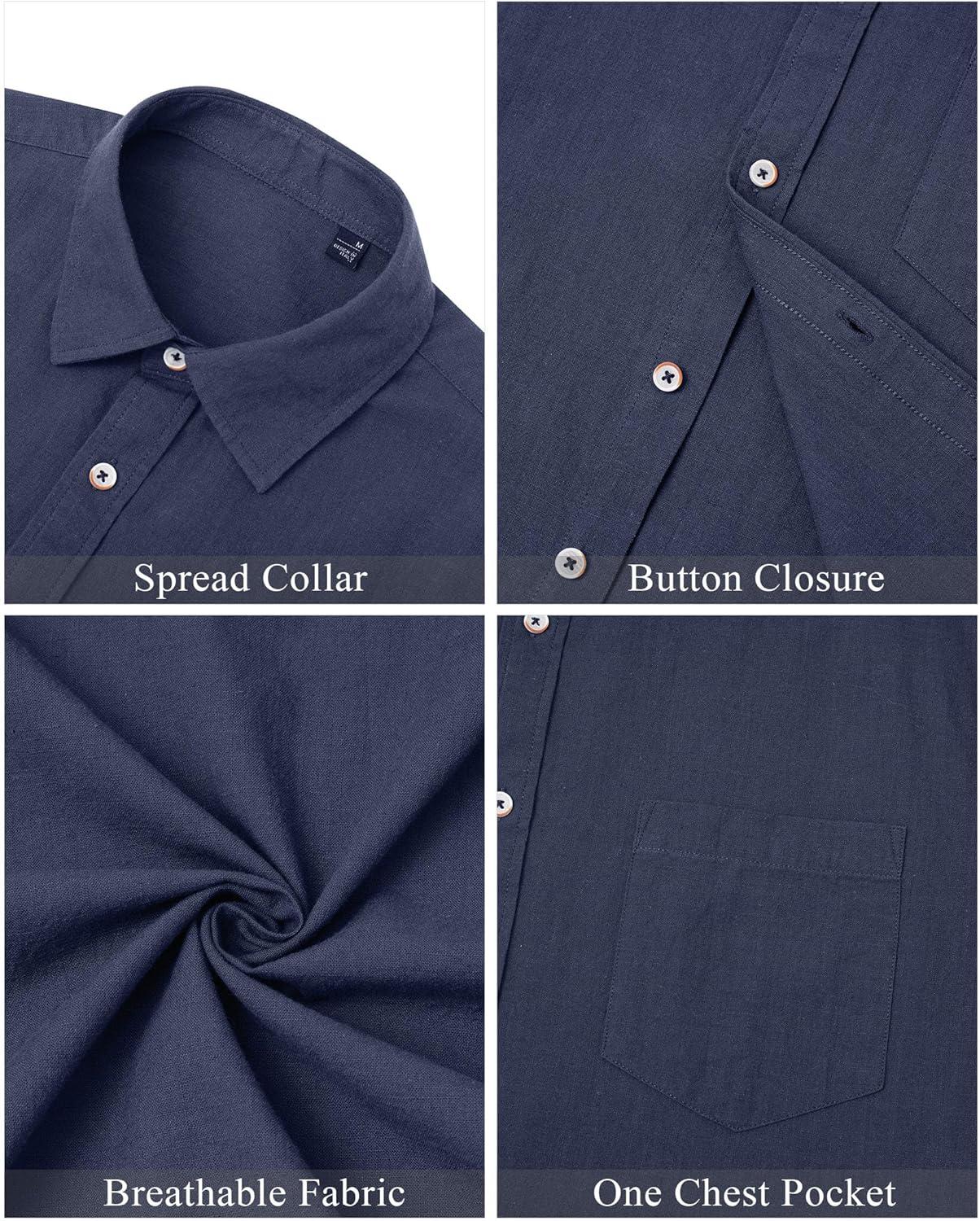 J.VER Men’s Linen Shirts Casual Button Down Long Sleeve Shirt Solid Spread Collar Summer Beach Shirts with Pocket(Navy Blue)