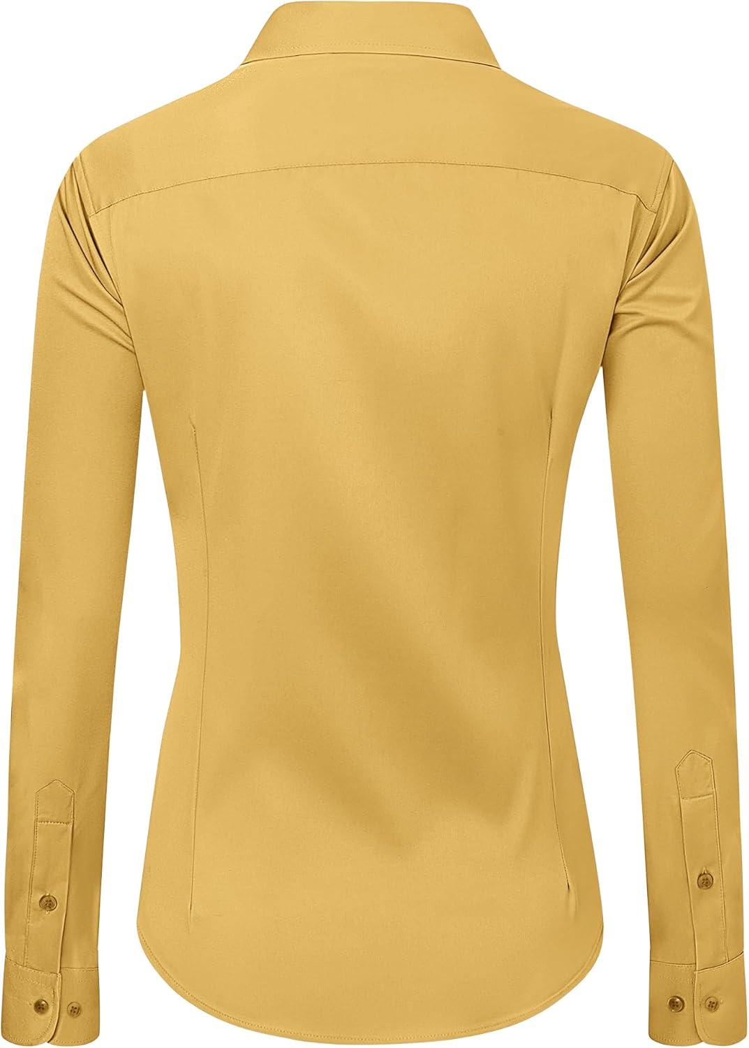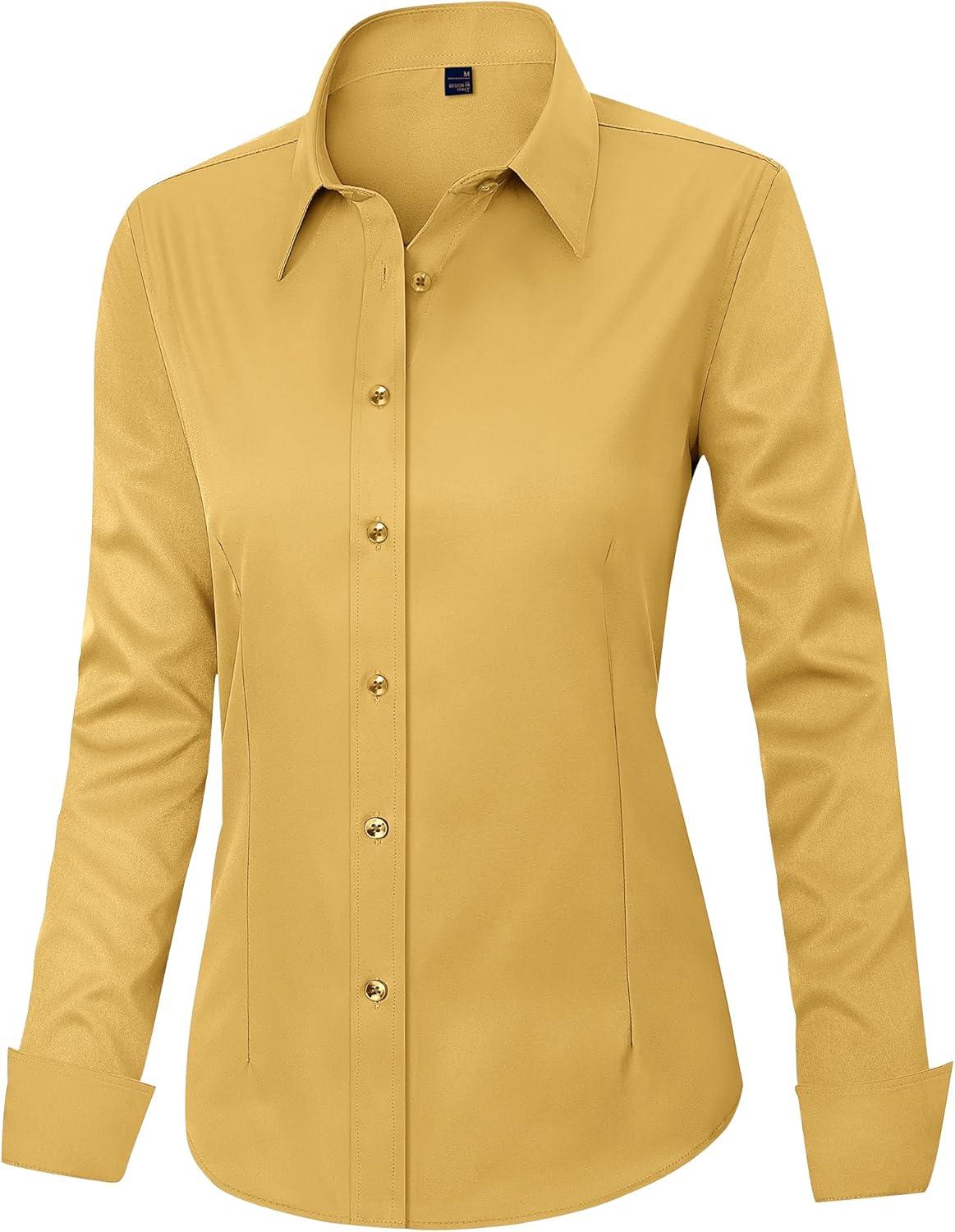 • J.VER Womens Dress Shirts Long Sleeve Button Down Shirt Wrinkle-Free Business Casual Blouse Office Work Tops(Lemon Yellow)