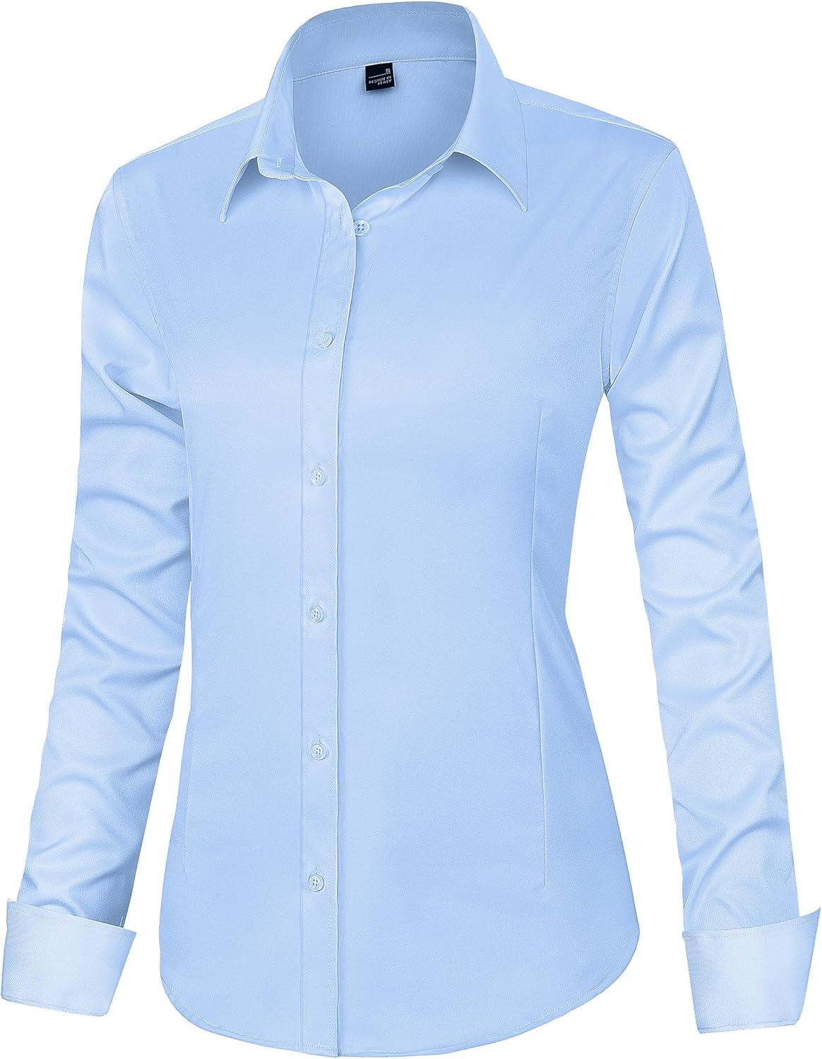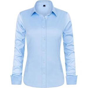 • J.VER Womens Dress Shirts Long Sleeve Button Down Shirt Wrinkle-Free Business Casual Blouse Office Work Tops(Light Blue)