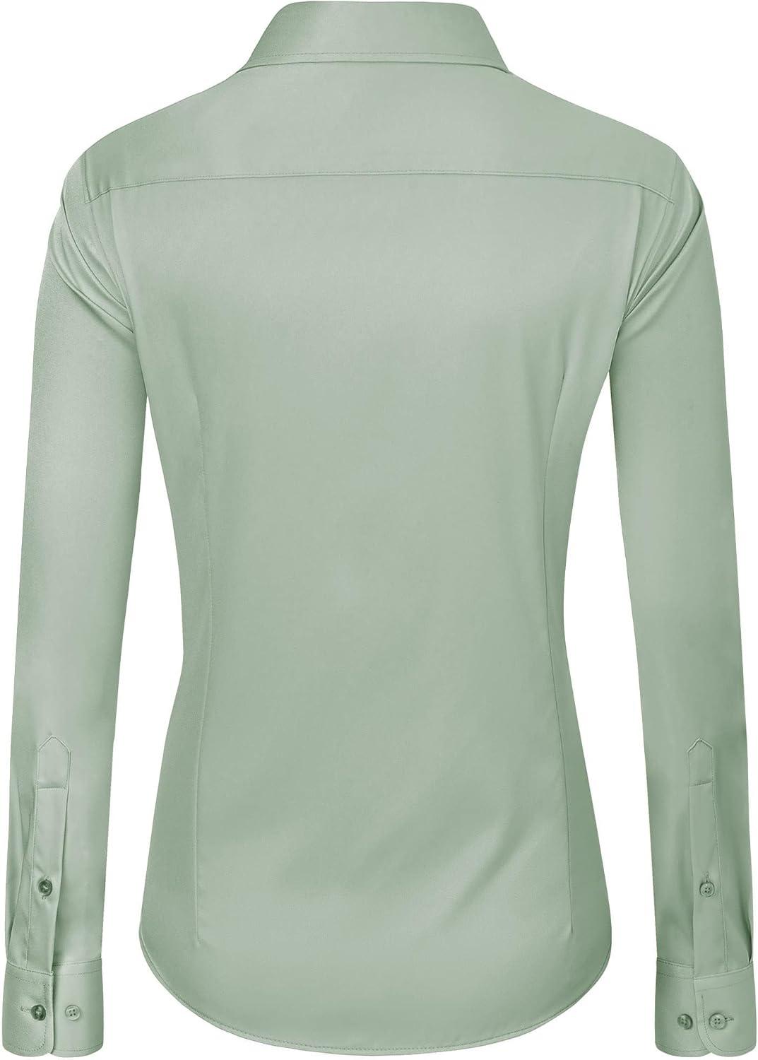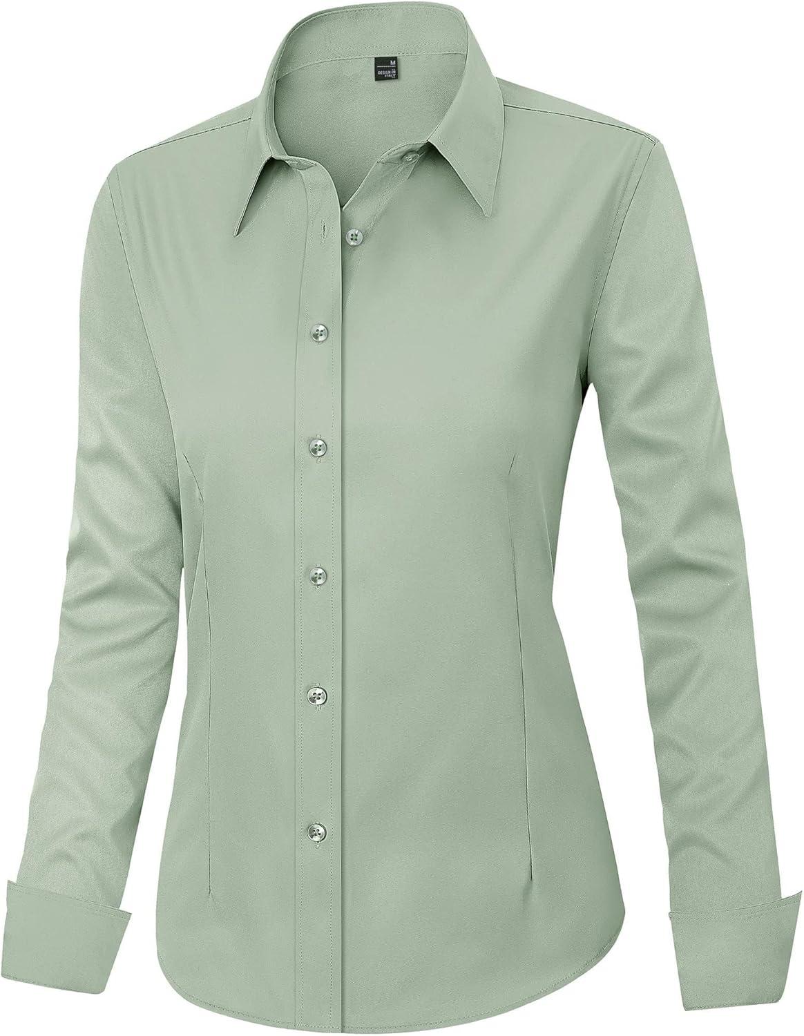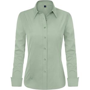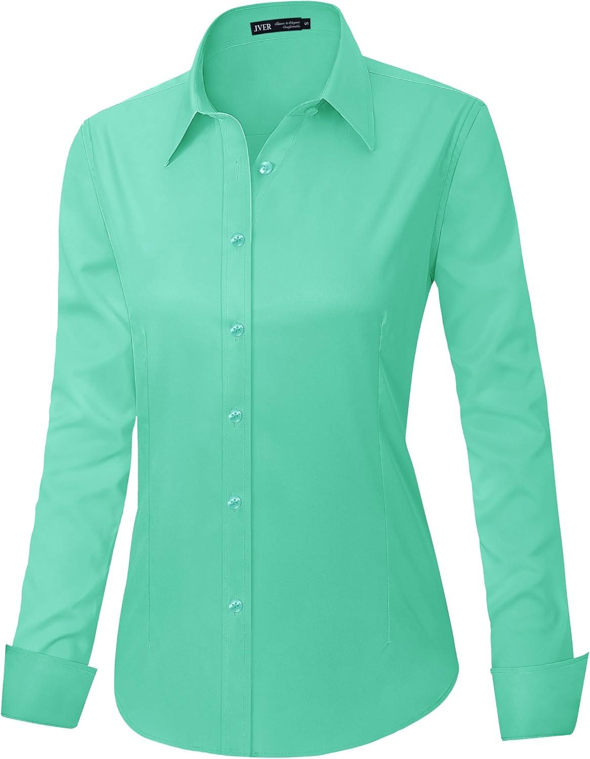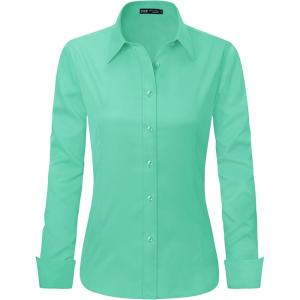 • J.VER Womens Dress Shirts Long Sleeve Button Down Shirt Wrinkle-Free Business Casual Blouse Office Work Tops(Light Green)