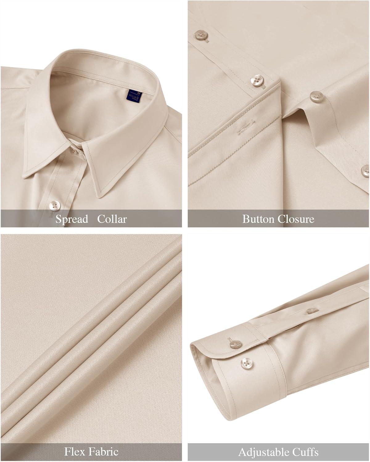 J.VER Womens Dress Shirts Long Sleeve Button Down Shirt Wrinkle-Free Business Casual Blouse Office Work Tops(Light Khaki)
