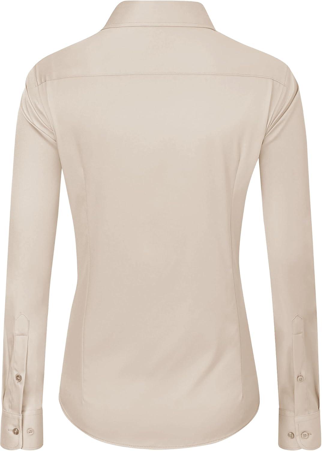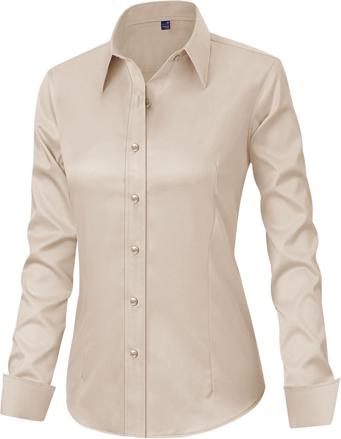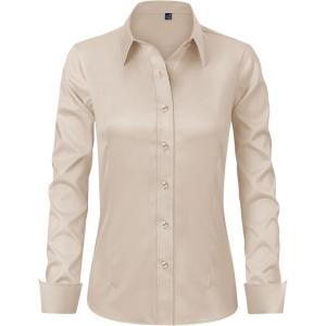 • J.VER Womens Dress Shirts Long Sleeve Button Down Shirt Wrinkle-Free Business Casual Blouse Office Work Tops(Light Khaki)