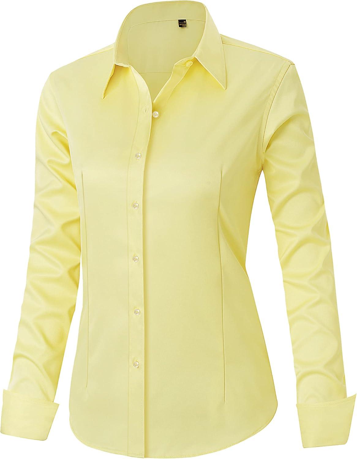 • J.VER Womens Dress Shirts Long Sleeve Button Down Shirt Wrinkle-Free Business Casual Blouse Office Work Tops(Light Yellow)
