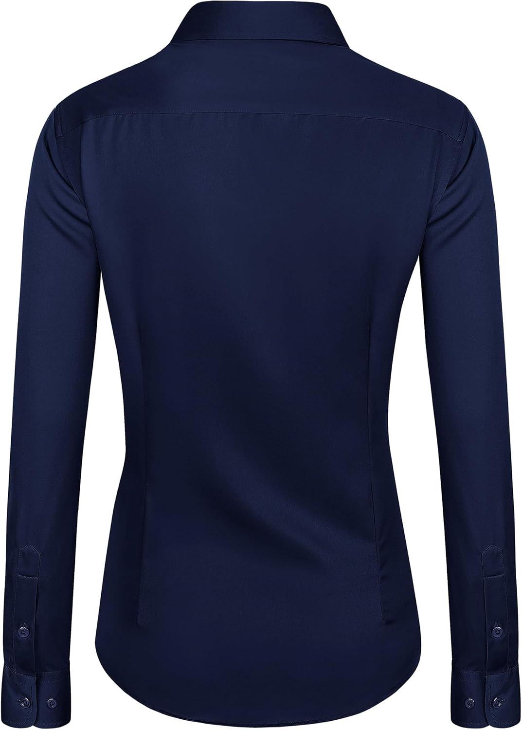 J.VER Womens Dress Shirts Long Sleeve Button Down Shirt Wrinkle-Free Business Casual Blouse Office Work Tops(Navy Blue)