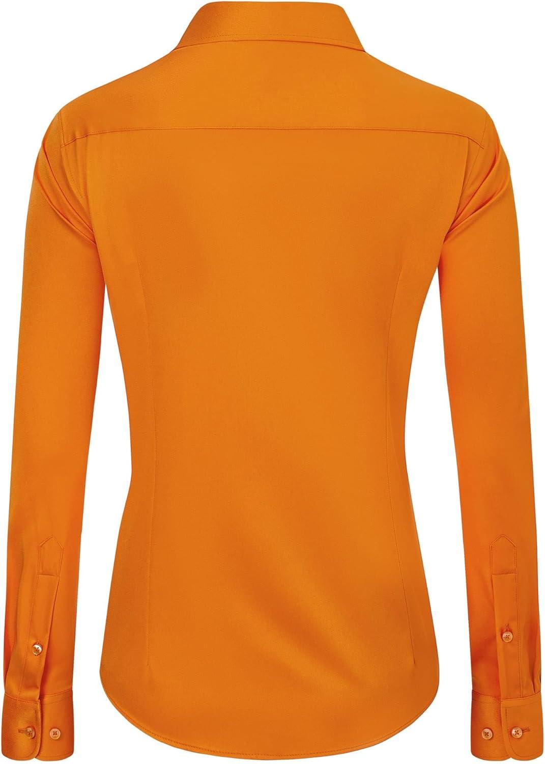 • J.VER Womens Dress Shirts Long Sleeve Button Down Shirt Wrinkle-Free Business Casual Blouse Office Work Tops(Orange)