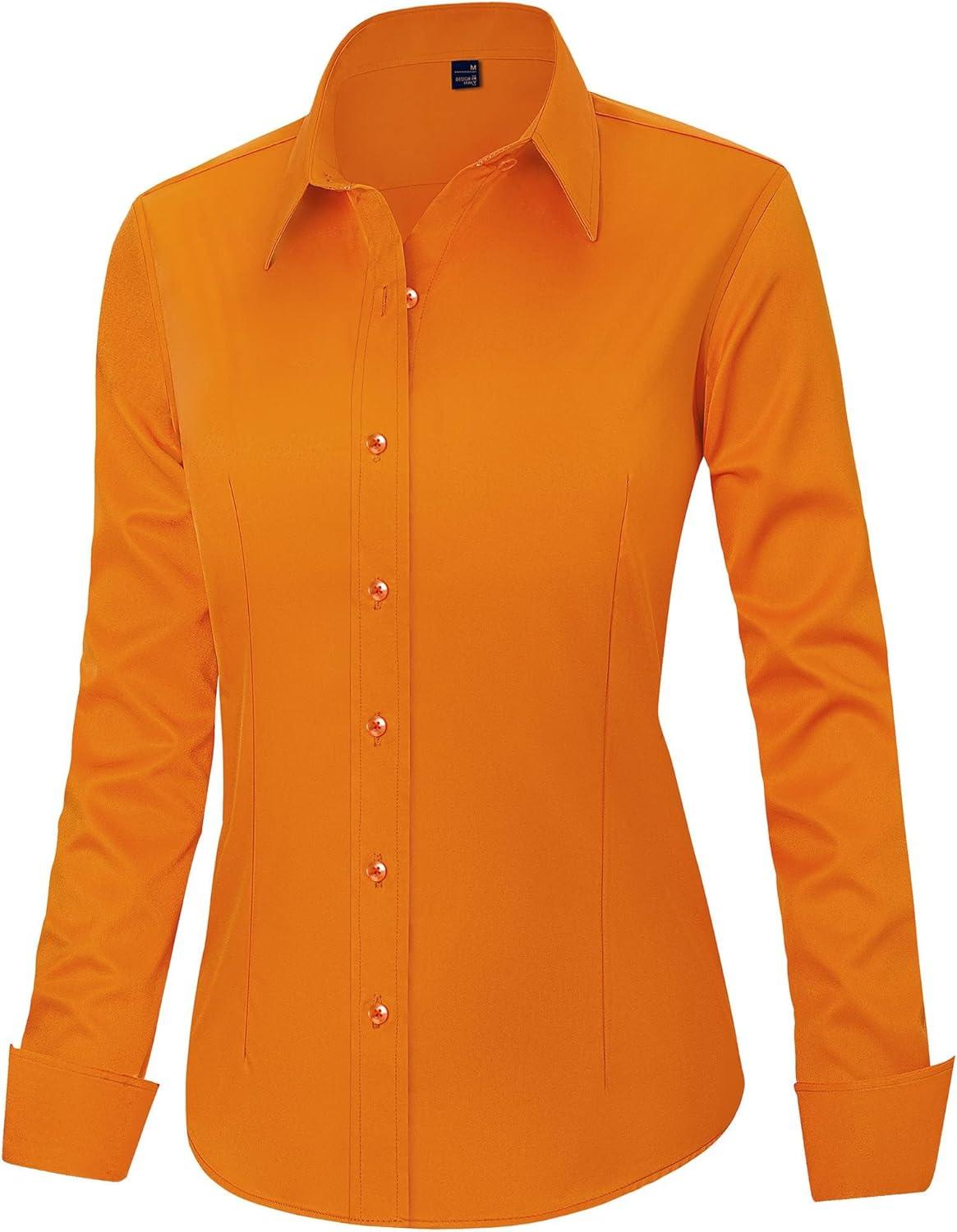 J.VER Womens Dress Shirts Long Sleeve Button Down Shirt Wrinkle-Free Business Casual Blouse Office Work Tops(Orange)
