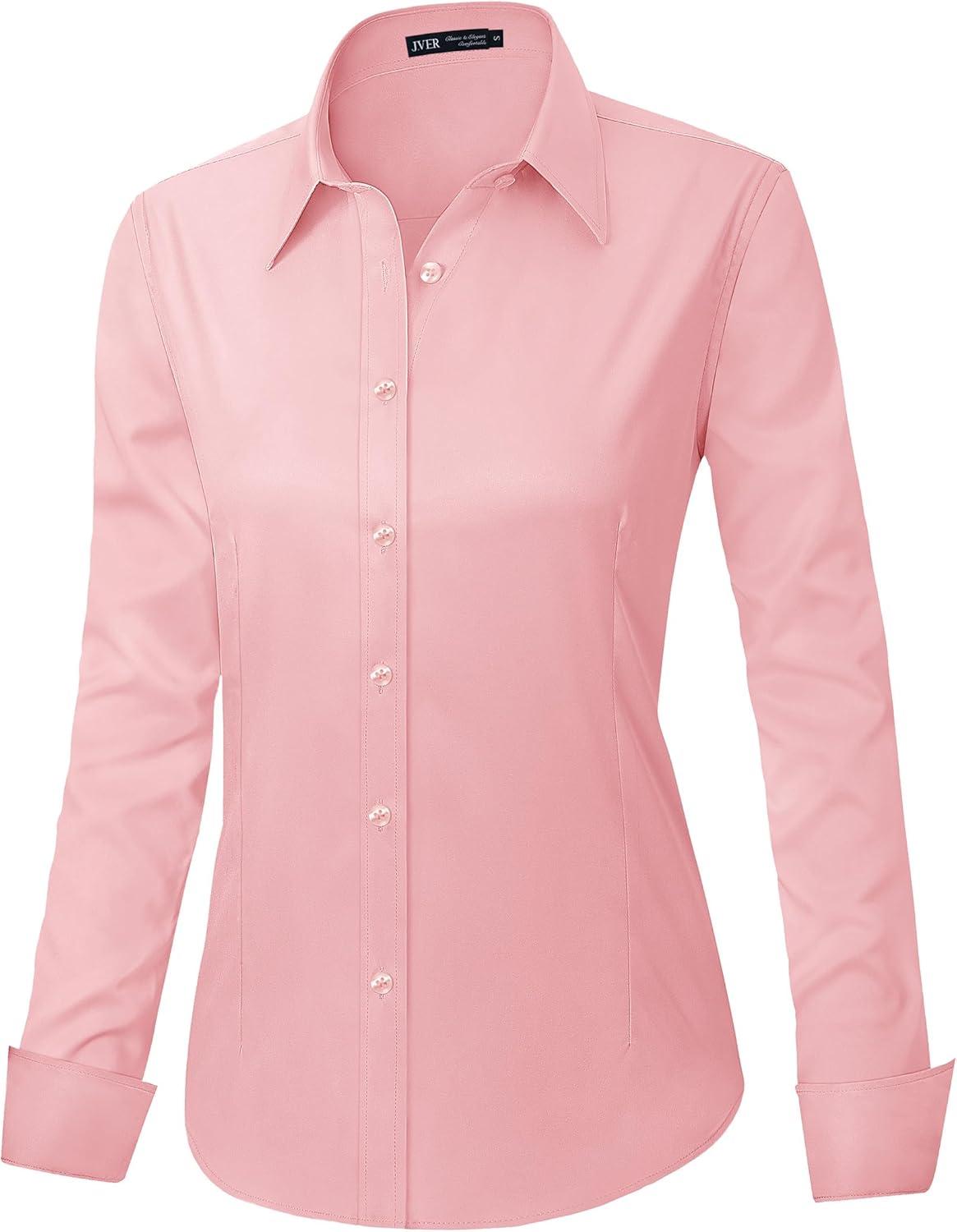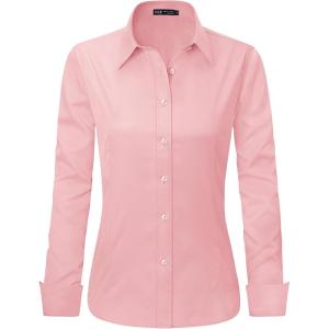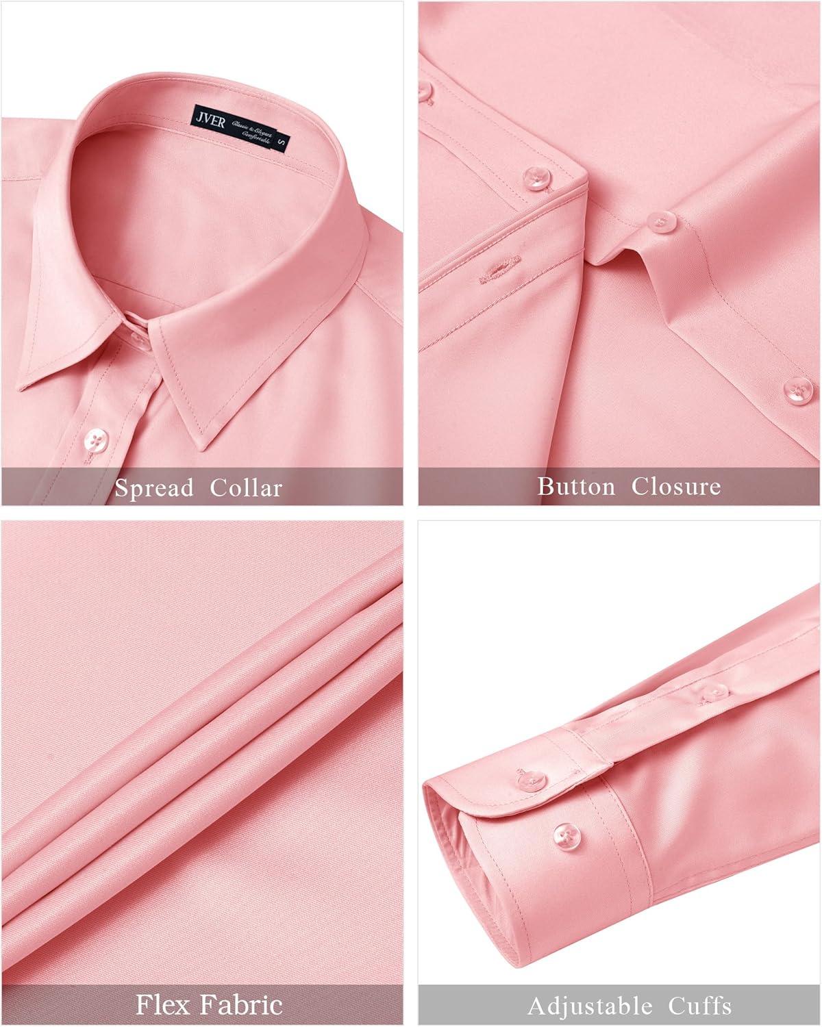 • J.VER Womens Dress Shirts Long Sleeve Button Down Shirt Wrinkle-Free Business Casual Blouse Office Work Tops(Pink)