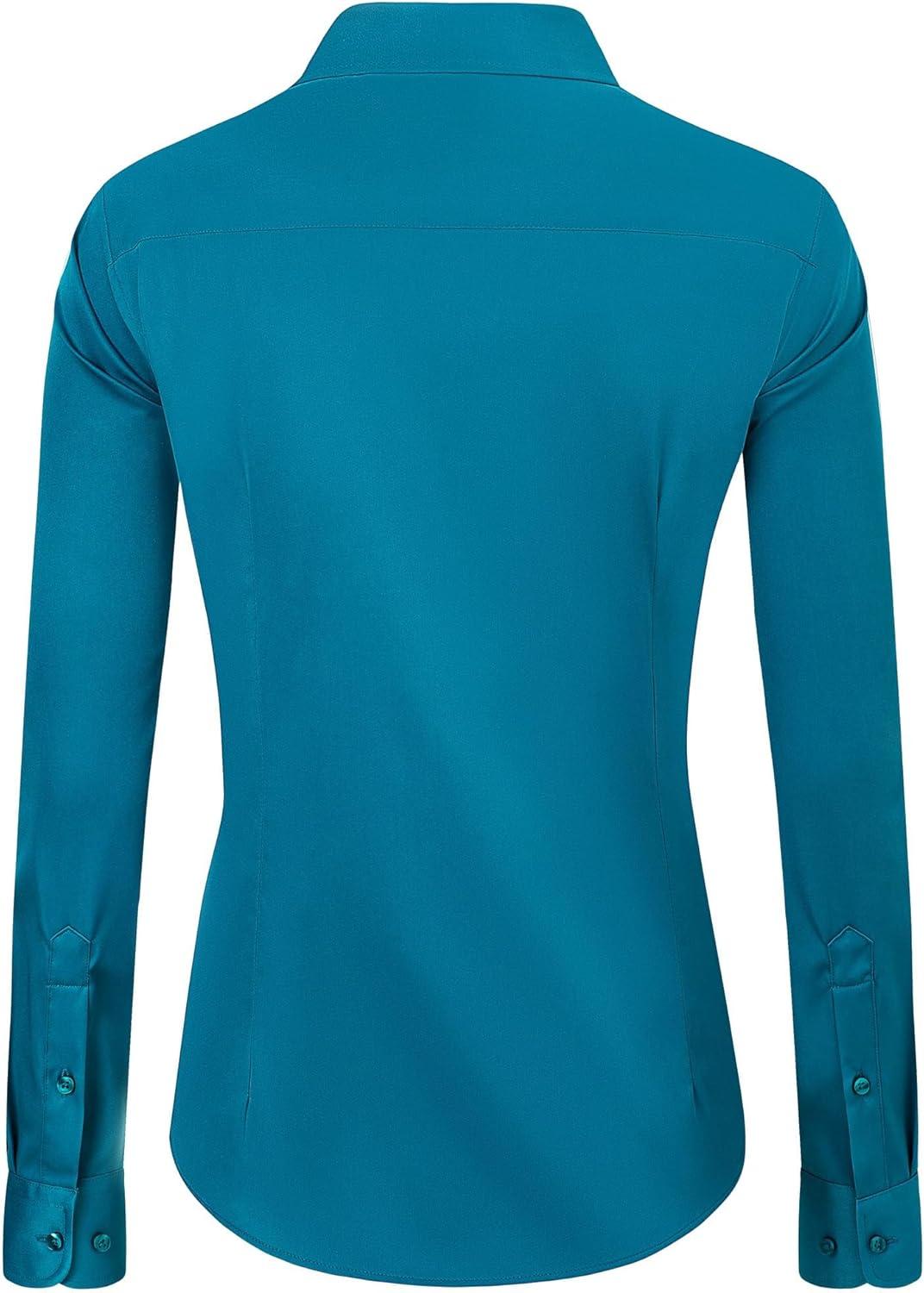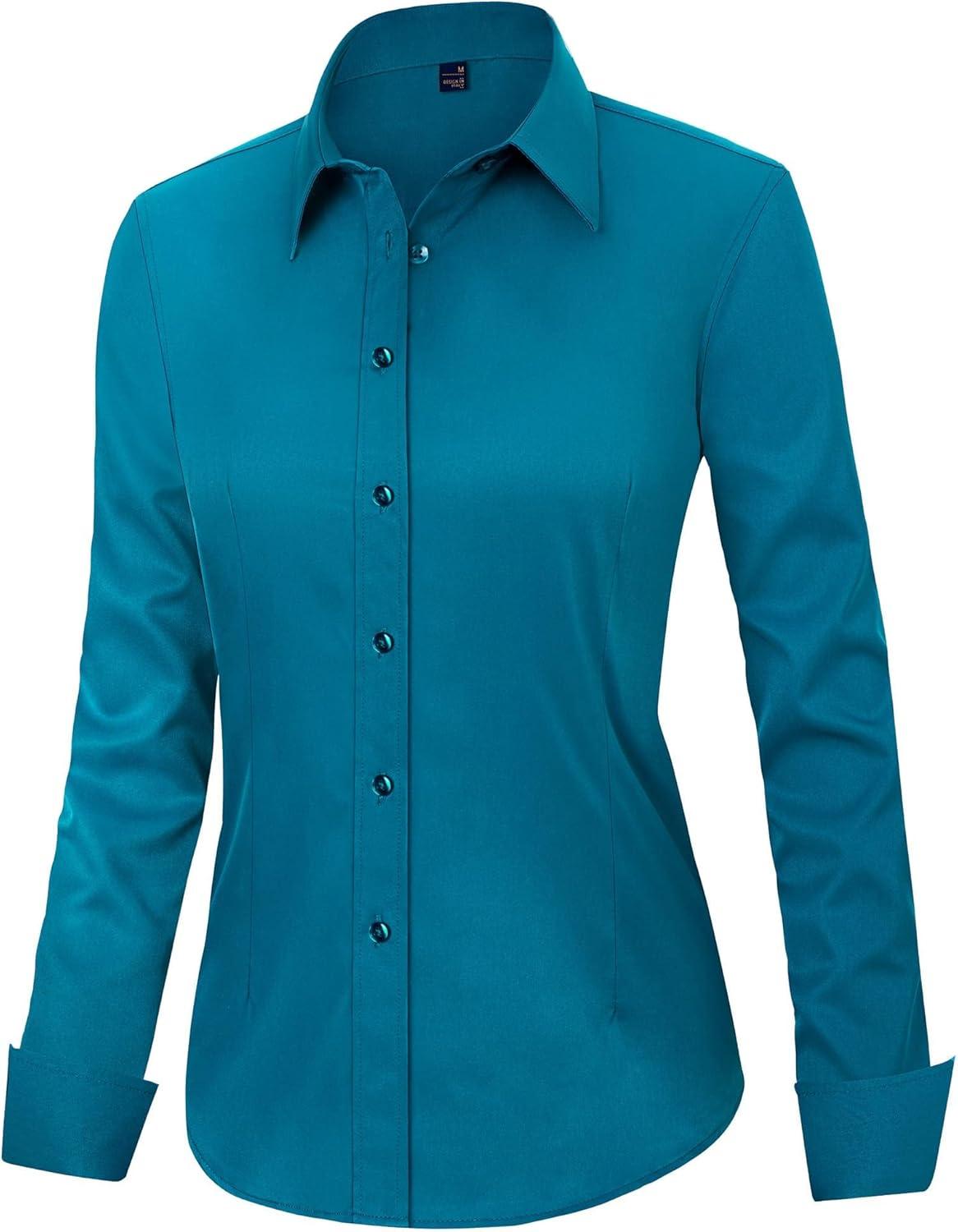 • J.VER Womens Dress Shirts Long Sleeve Button Down Shirt Wrinkle-Free Business Casual Blouse Office Work Tops(Peacock Blue)