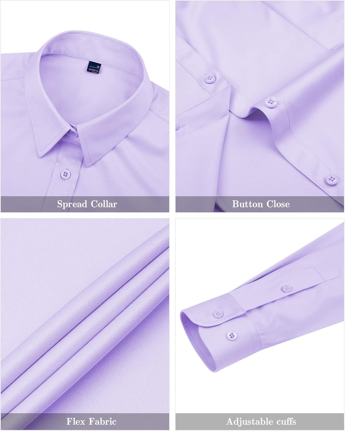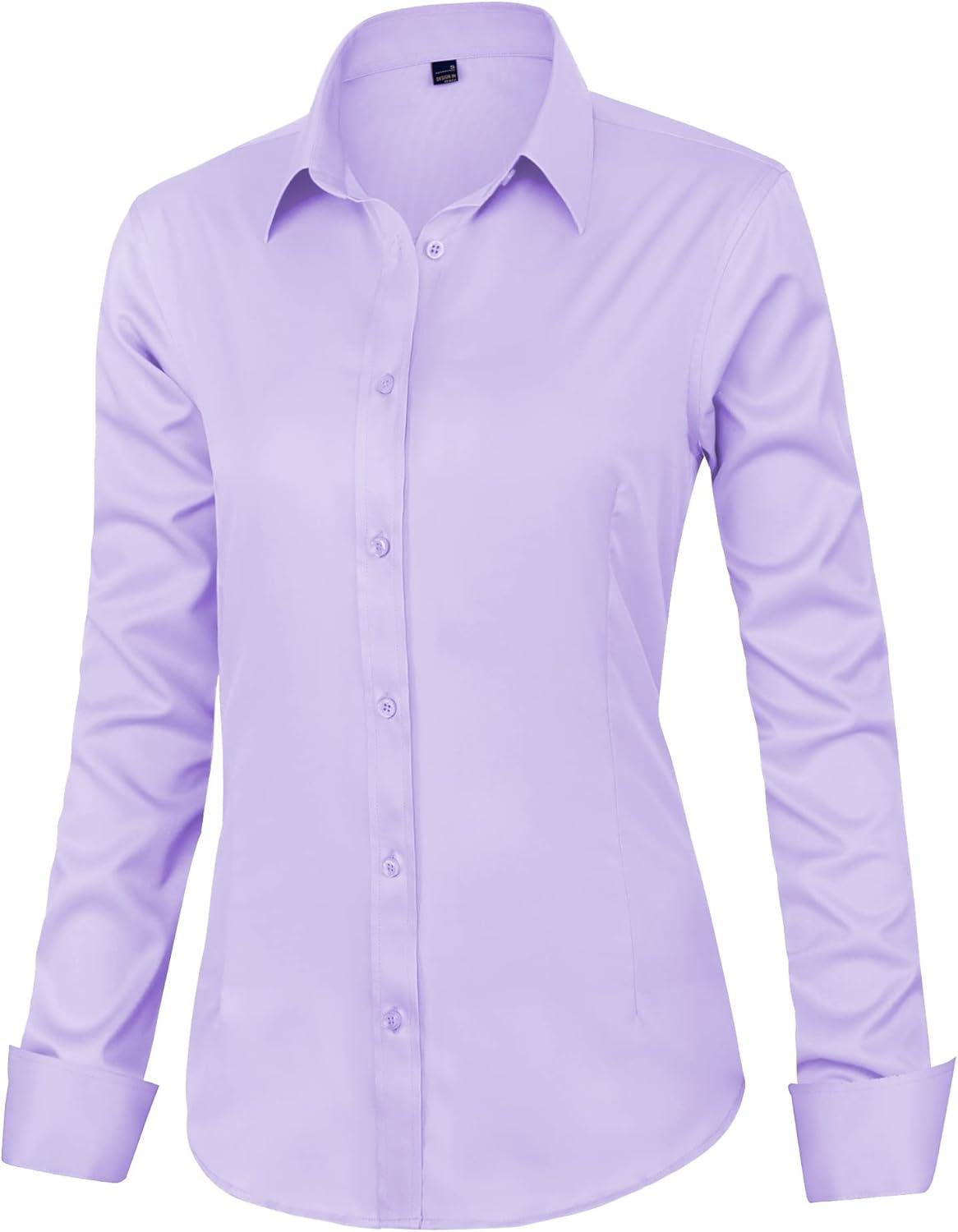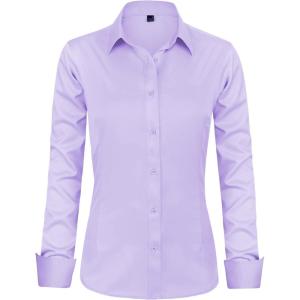 • J.VER Womens Dress Shirts Long Sleeve Button Down Shirt Wrinkle-Free Business Casual Blouse Office Work Tops(Purple)