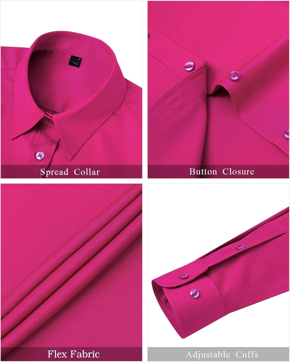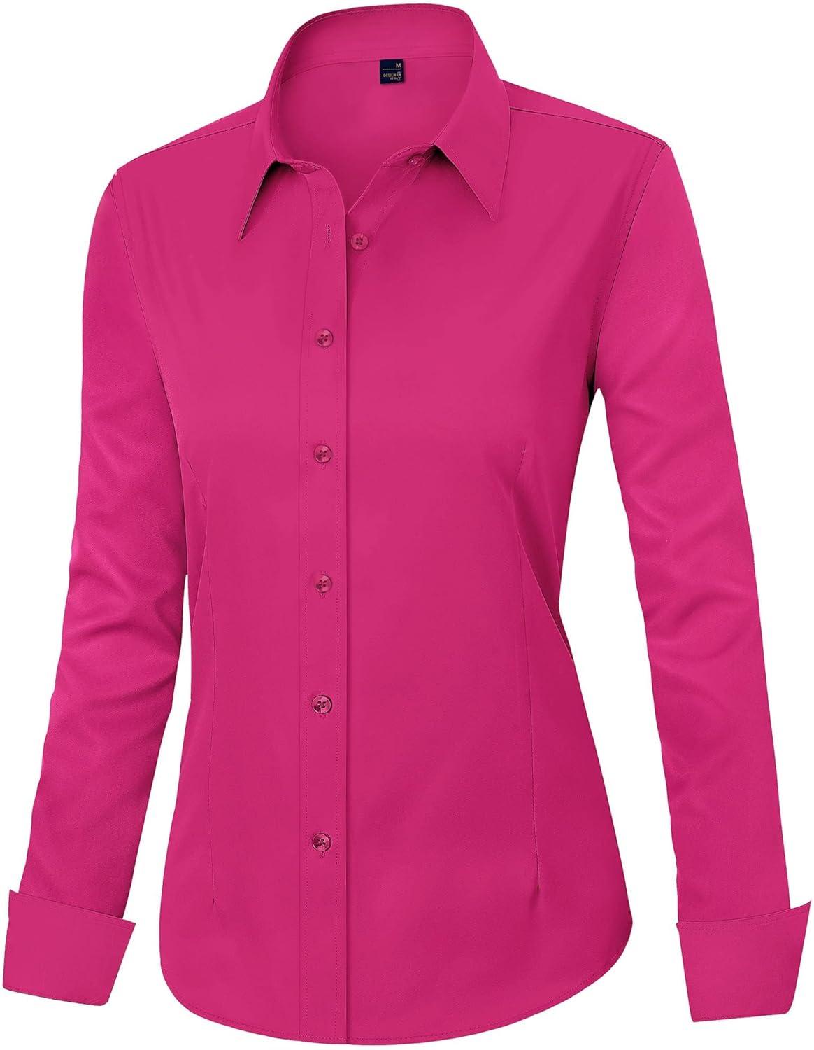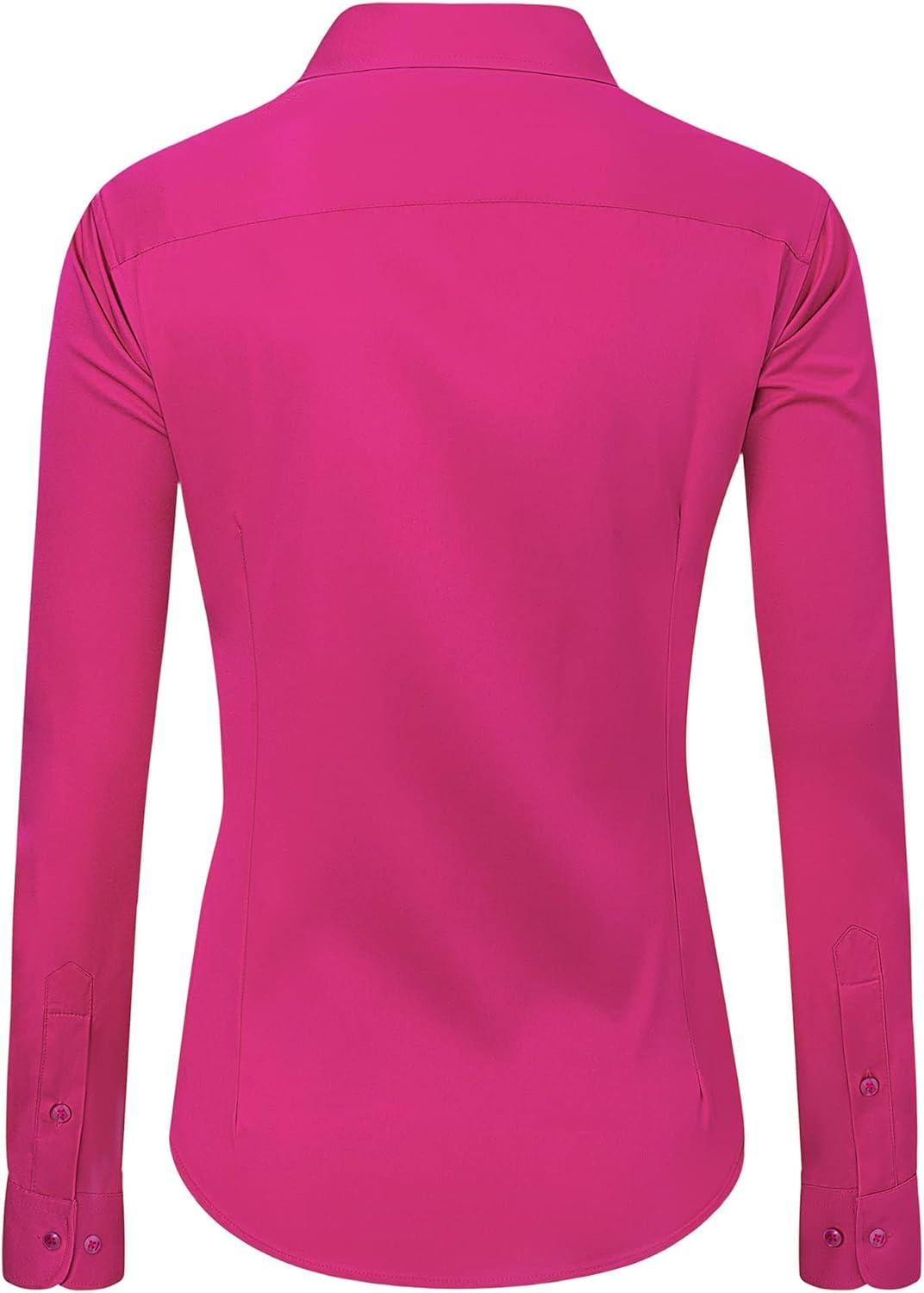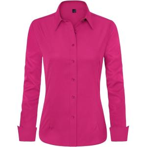 • J.VER Womens Dress Shirts Long Sleeve Button Down Shirt Wrinkle-Free Business Casual Blouse Office Work Tops(Rose Red)